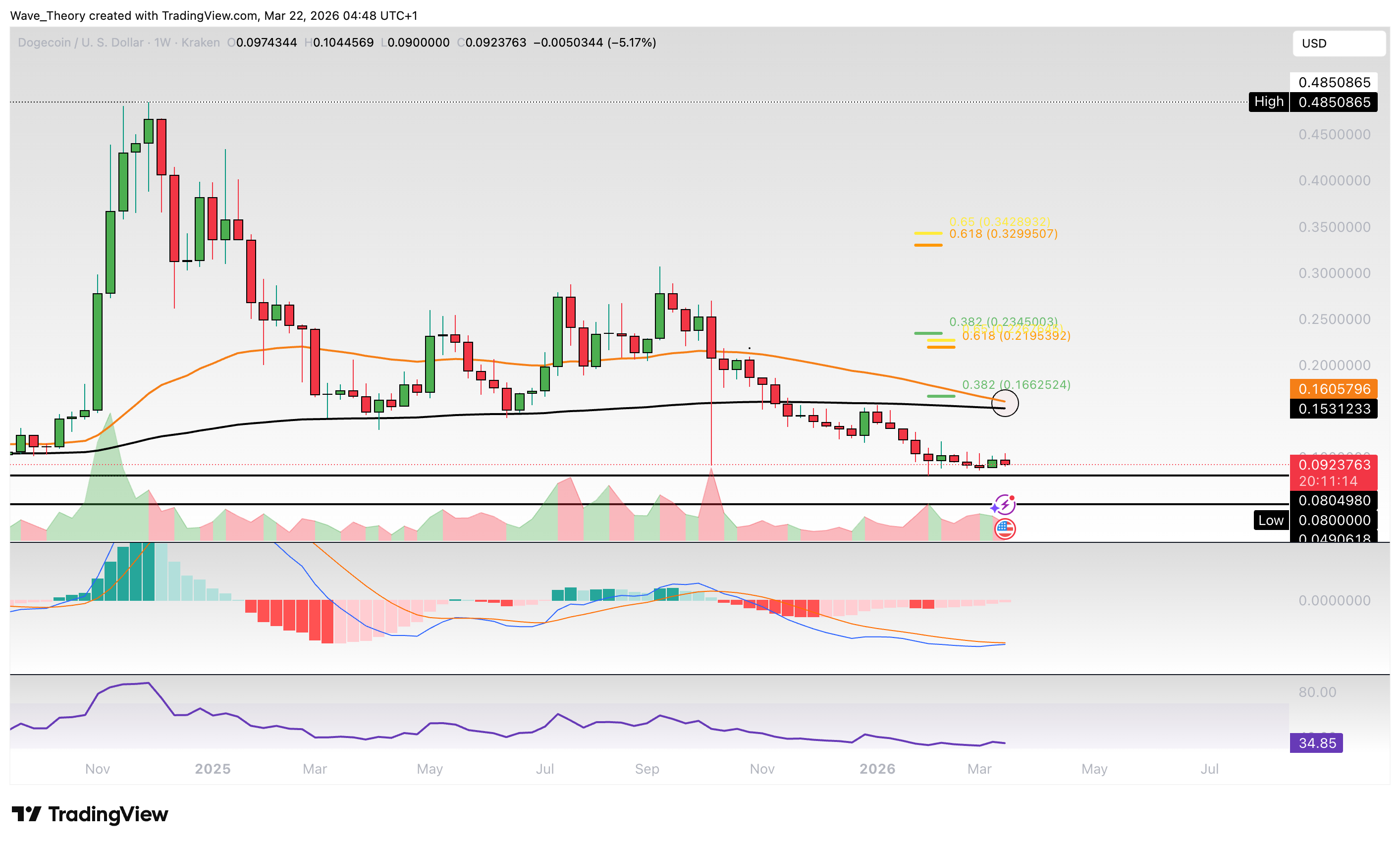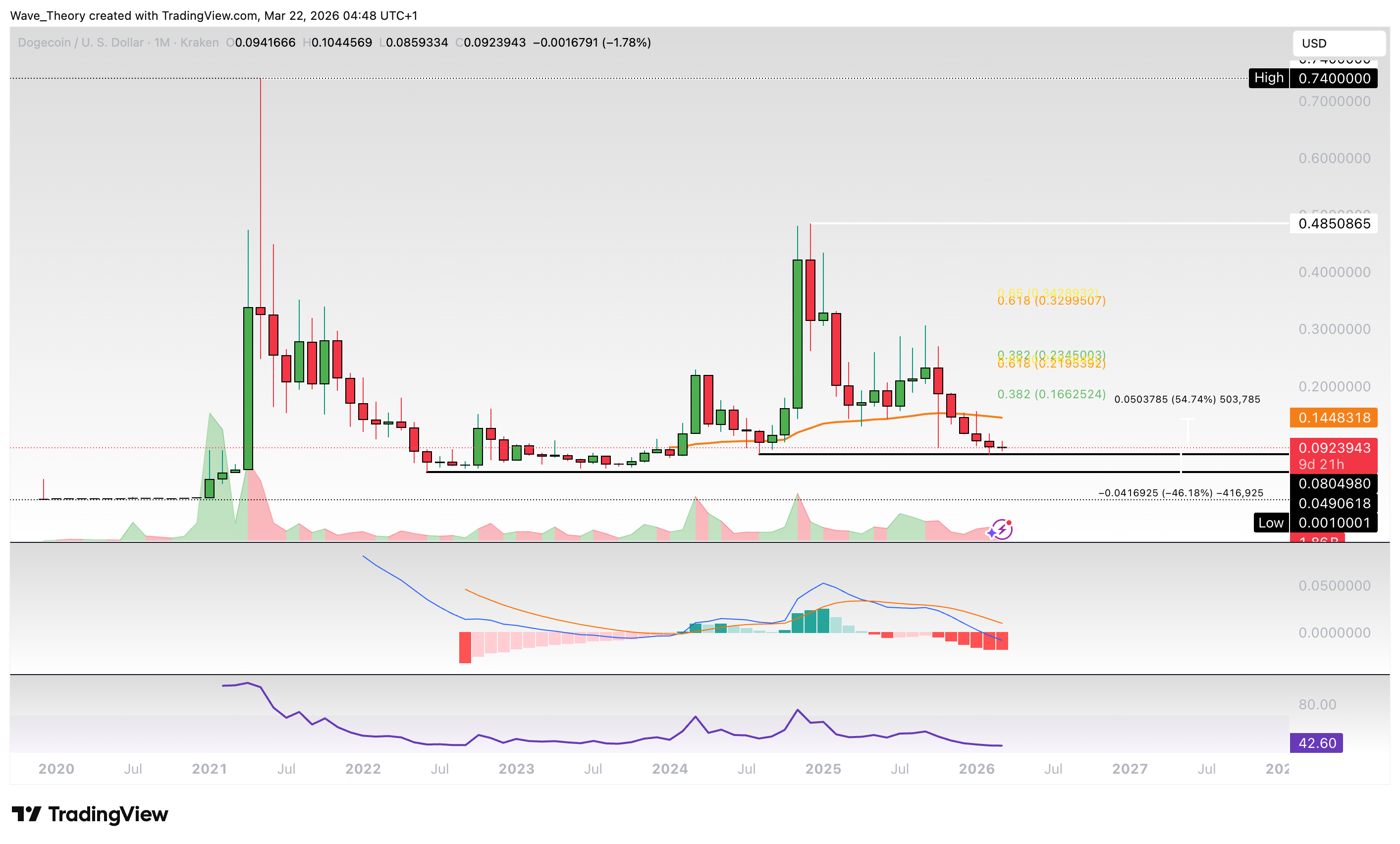 Steigt der Dogecoin Kurs zum letzten Hoch oder fällt er auf das letzte Tief?