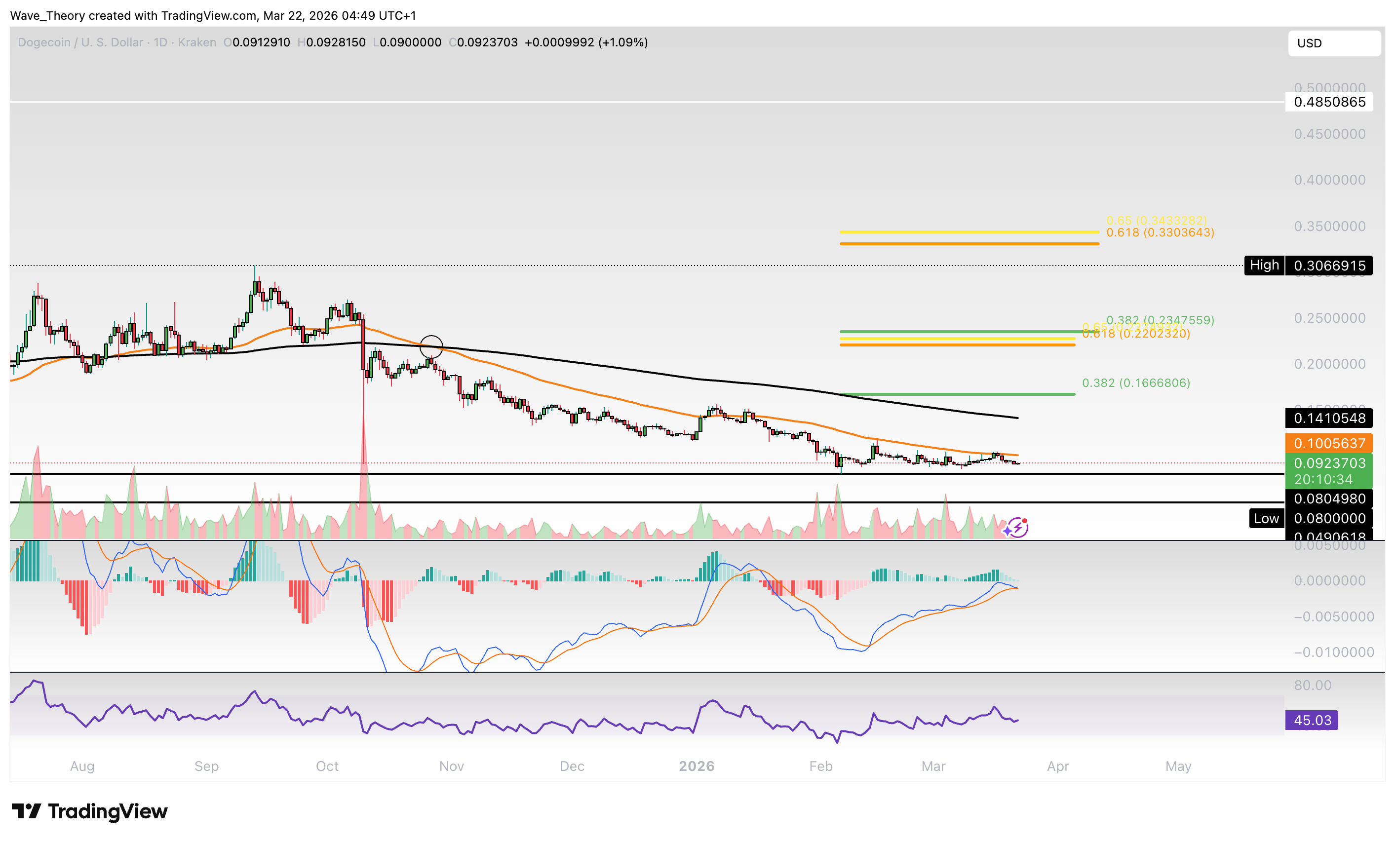 Dogecoin-Prognose für Sonntag, 22. März 2026: Der Dogecoin Kurs könnte an der historischen Unterstützung stark bullisch abprallen.