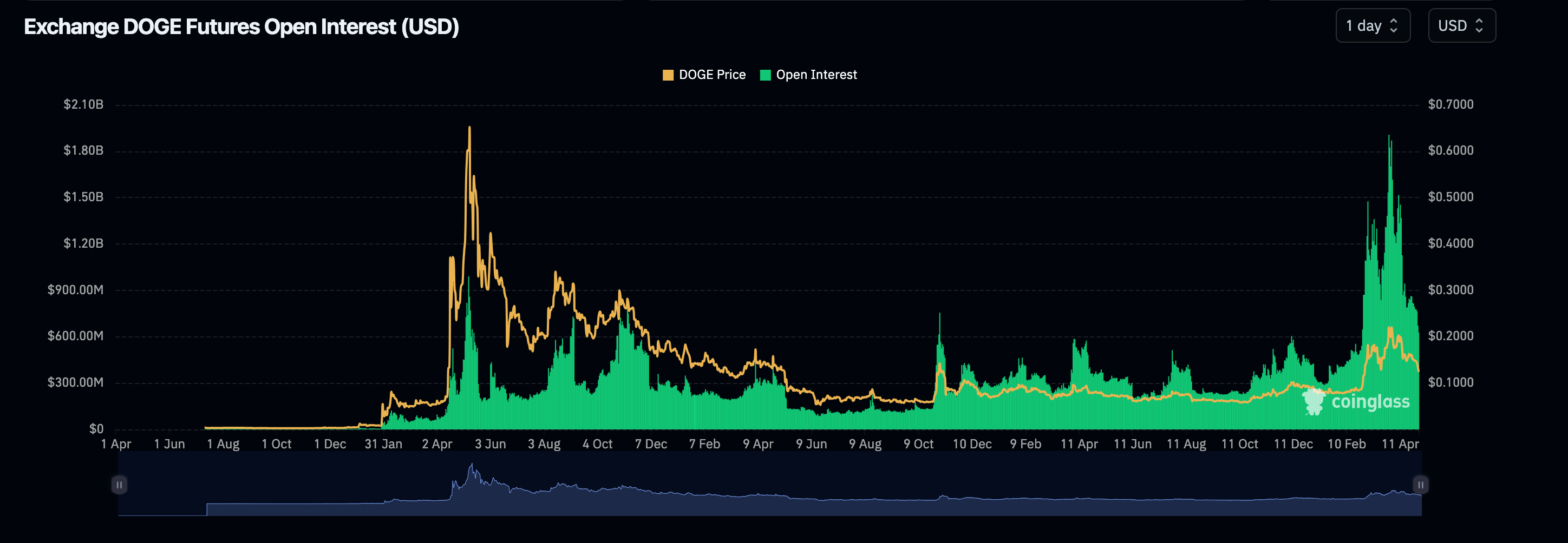 Dogecoin führte den jüngsten Rückgang an, sein Open Interest stürzte um 64 Prozent auf 668,2 Millionen USD seit Anfang April ab. Auch Solana und Ripple mussten deutliche Einbußen hinnehmen. Solana fiel um 47 Prozent auf 1,51 Milliarden USD und Ripple um 44 Prozent auf 497,67 Millionen USD.