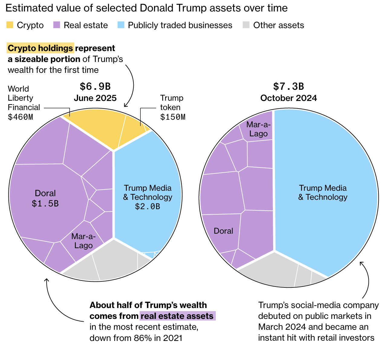 Stattdessen stellte die New York Times eine etwas andere Sichtweise dar, die jedoch auf demselben Kernfakt basiert: Immobilienbestände machen immer weniger von Trumps Vermögen aus.