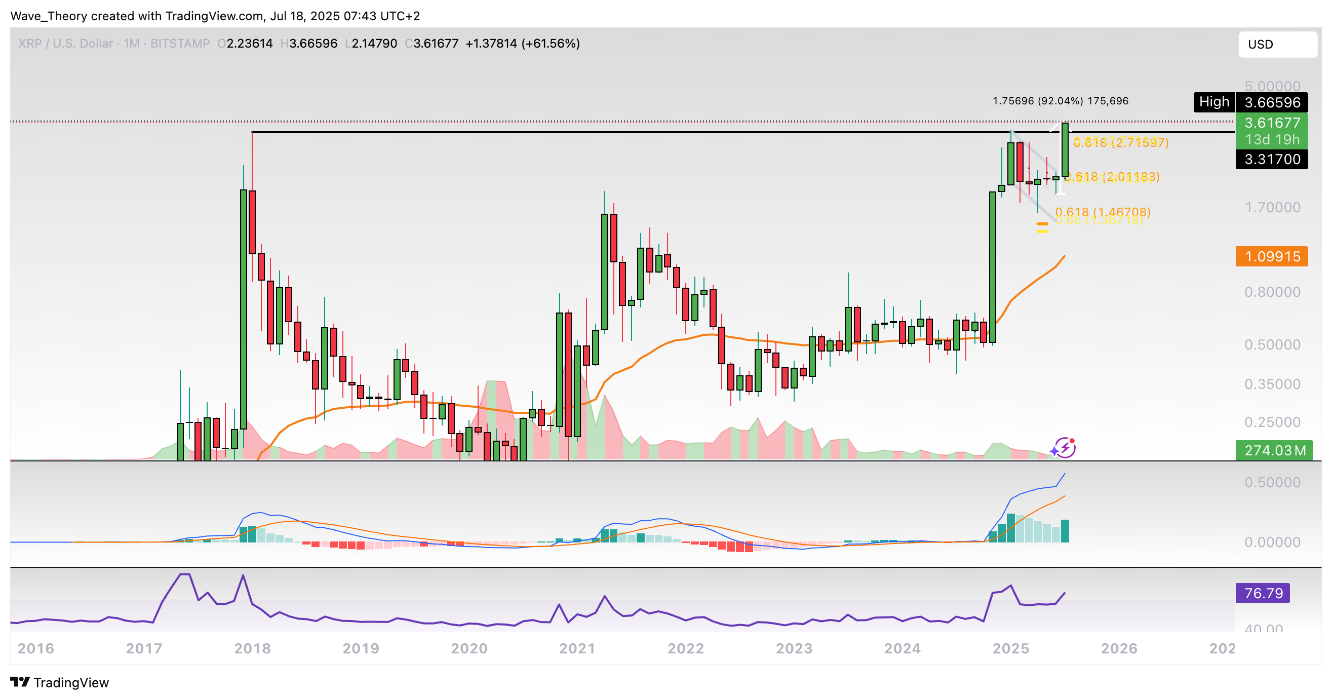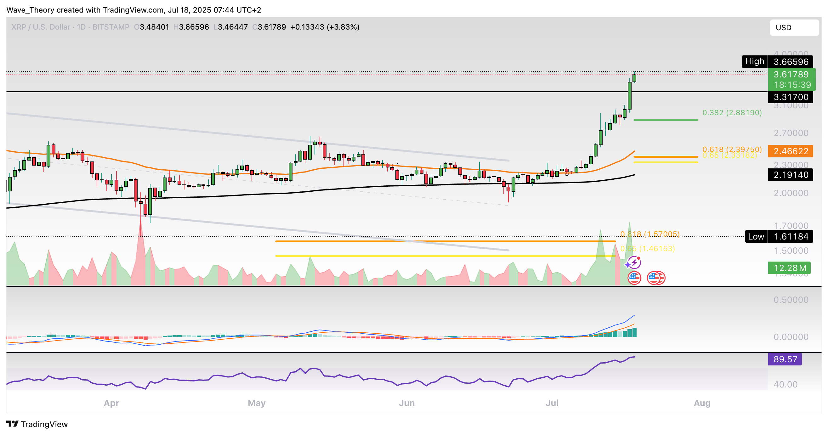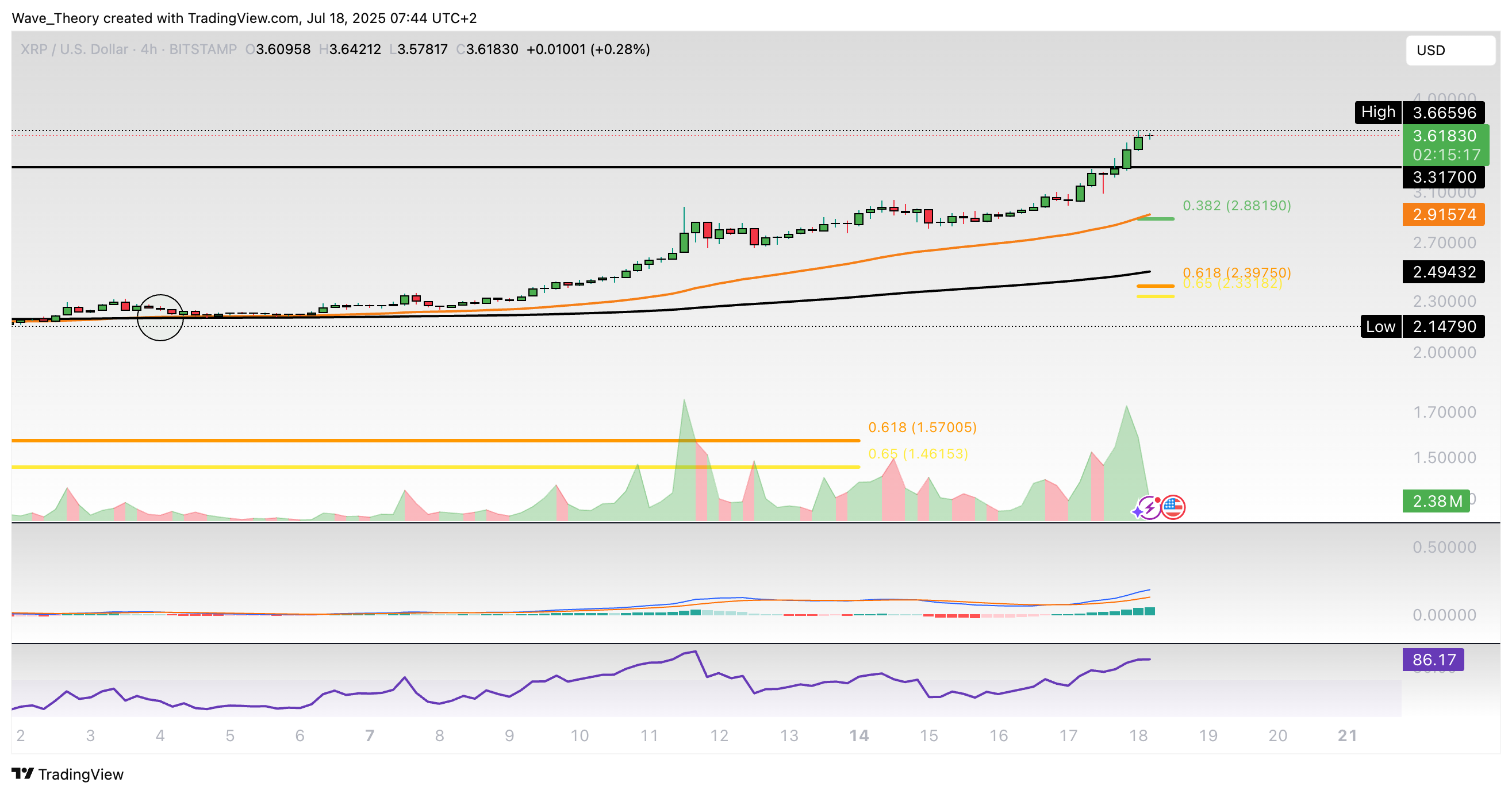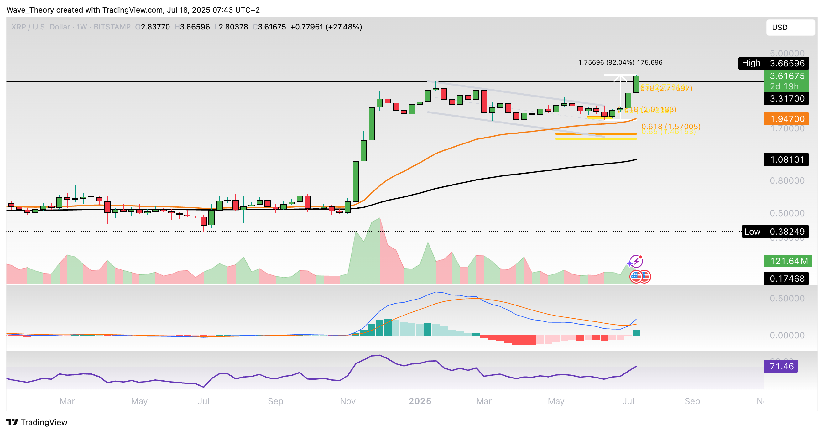 SponsoredDer XRP Kurs hat bei rund 3,66 USD ein neues ATH erreicht