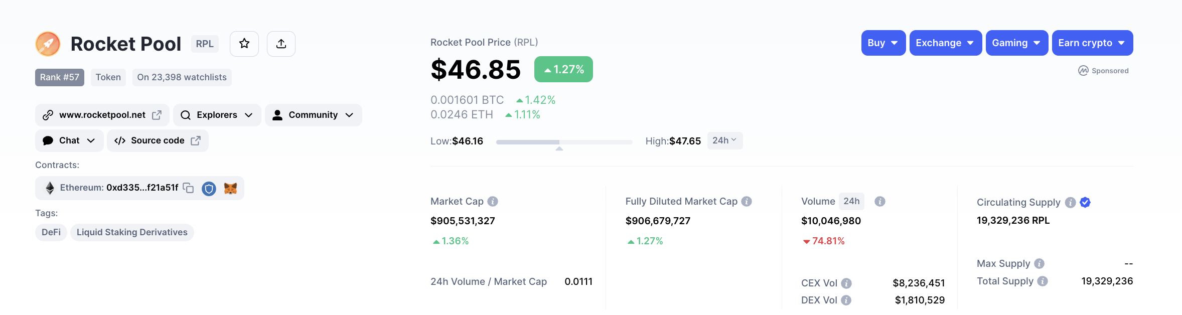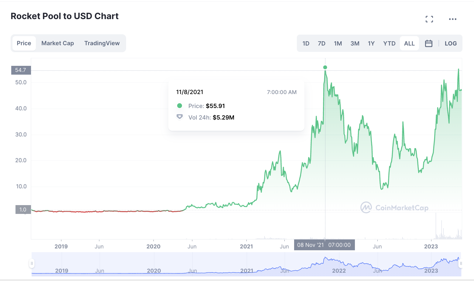 Rocket Pool ist nur 39 % vom Allzeithoch (ATH) entfernt
