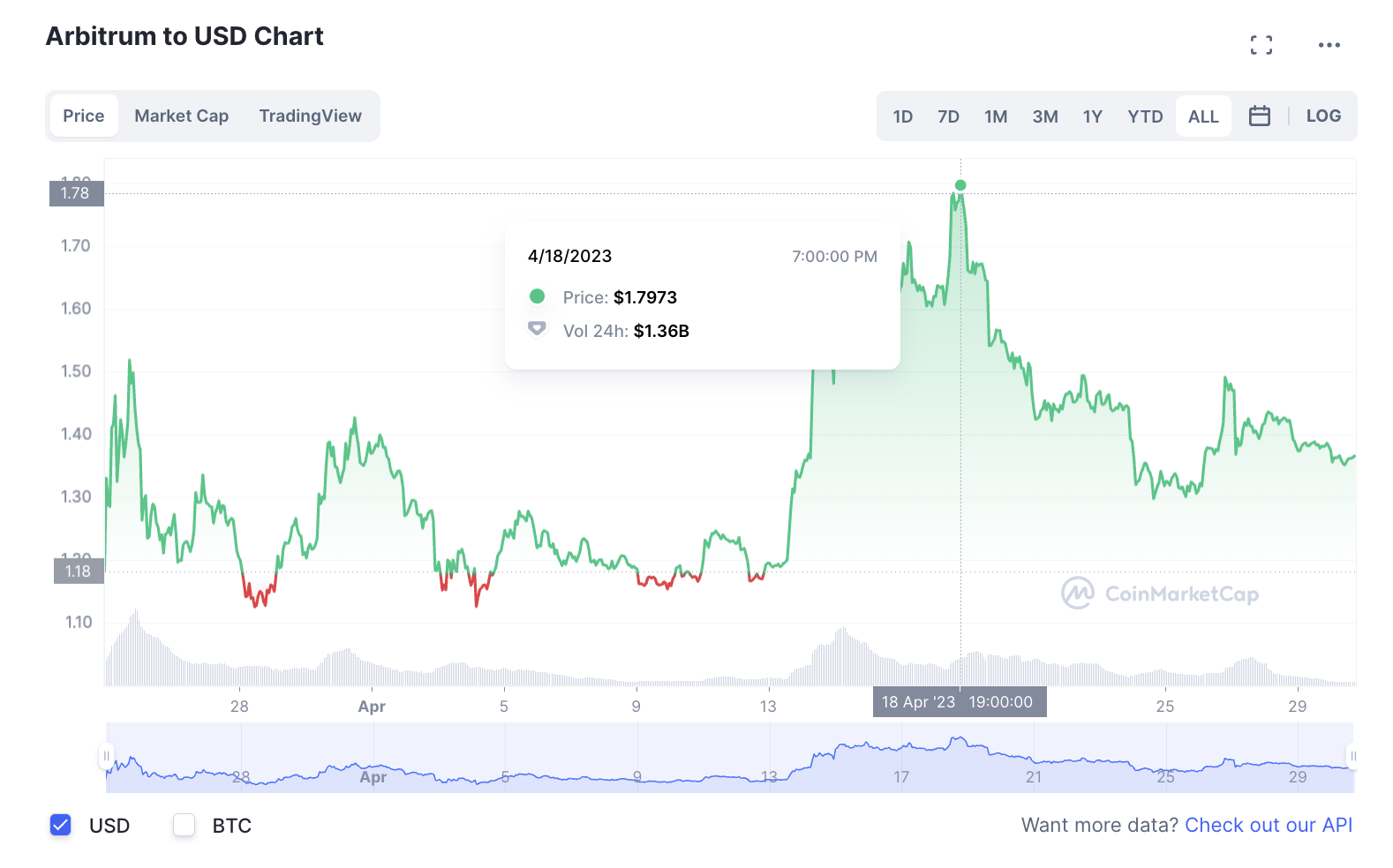 Der Arbitrum Kurs ist nur 33 % vom ATH entfernt