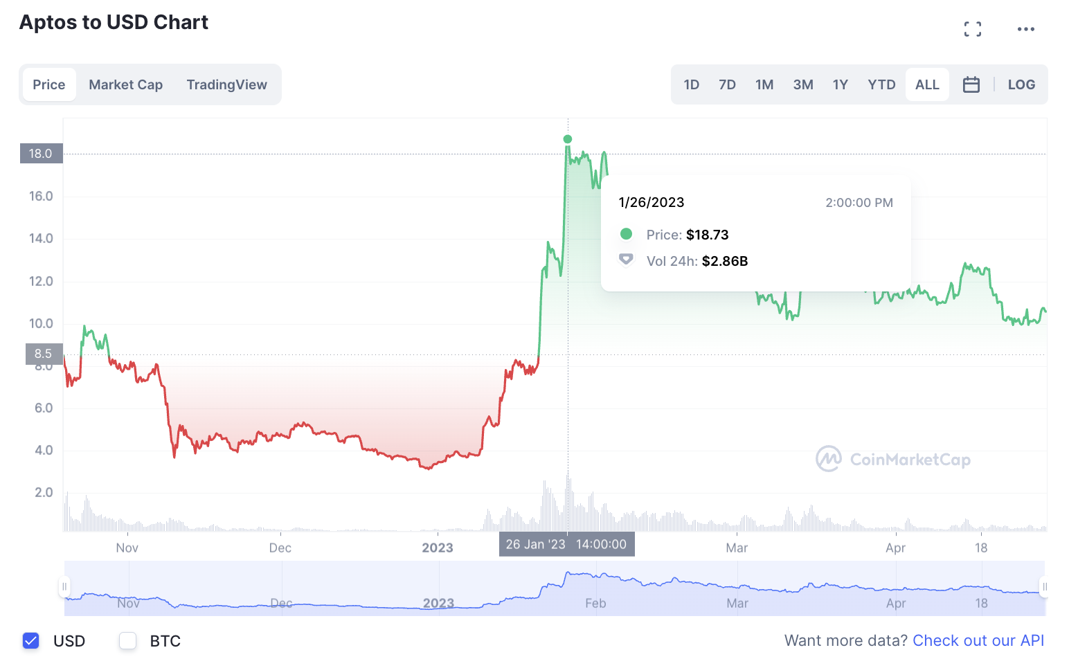 Aptos erreichte das ATH erst Ende Januar dieses Jahres