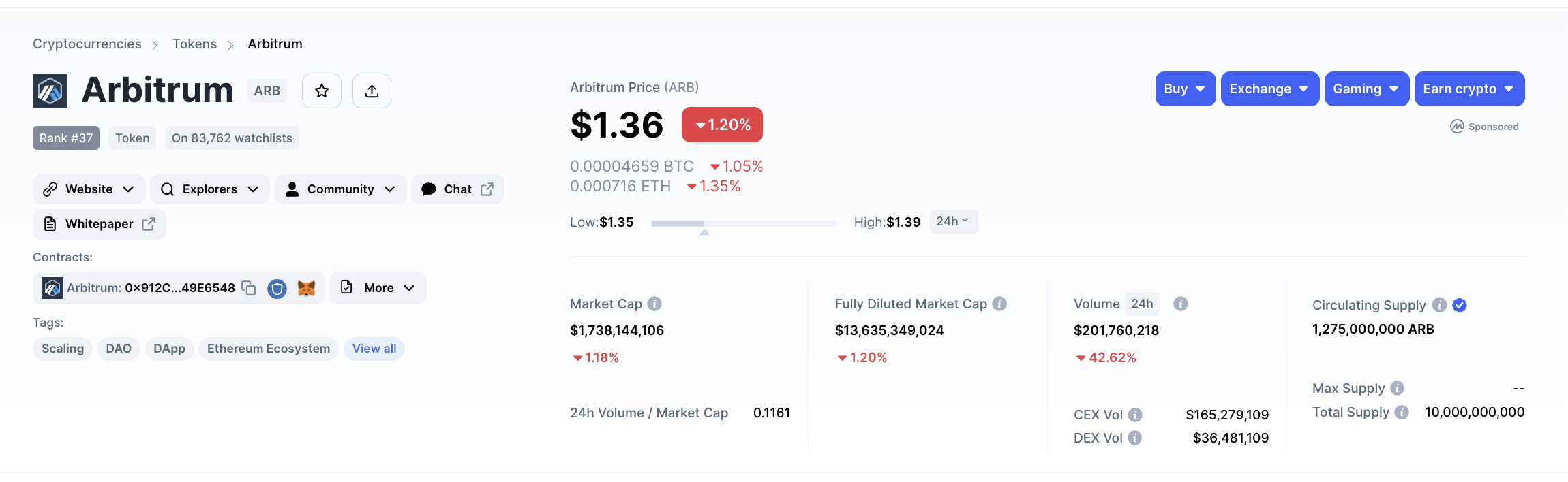 Arbitrum erreichte vor wenigen Tag das ATH