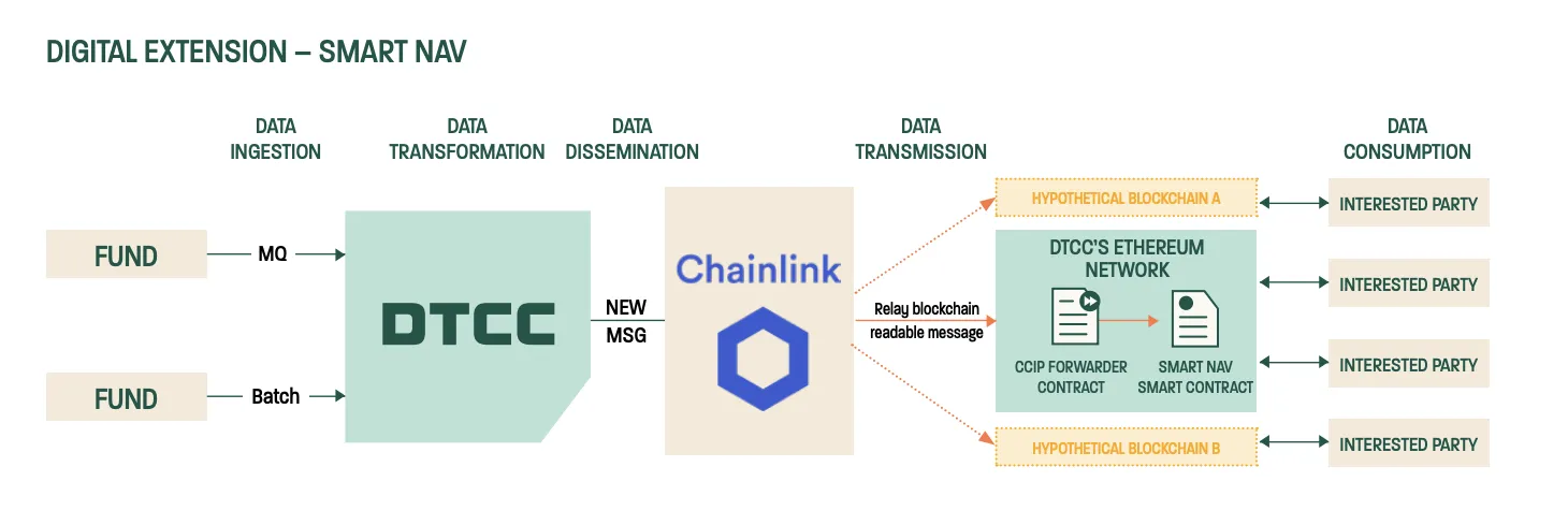Die Depository Trust and Clearing Corporation (DTCC) schließt ein Pilotprojekt “Smart NAV” zur Cross-Chain Datenübertragung erfolgreich ab. Um Daten zu übertragen und in verschiedene Blockchain Anwendungen zu integrieren, nutzte das Unternehmen die Blockchain Infrastruktur von Chainlink.