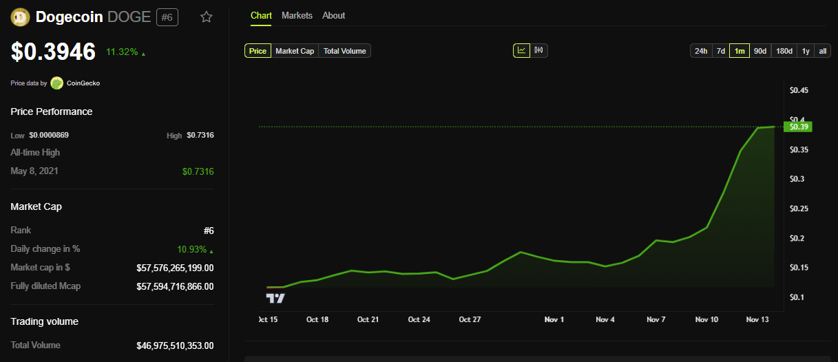 Das Akronym D.O.G.E erregte schnell Aufmerksamkeit und fand Anklang bei den Fans der beliebten Memecoin Dogecoin, die Musk bekanntlich unterstützt. Inmitten des Hypes stieg Dogecoin um mehr als 10 Prozent. Dieser Anstieg wurde durch Spekulationen ausgelöst, dass Musks Führung von D.O.G.E. eine zukünftige Integration der Kryptowährung in die Initiative oder seine Unternehmen signalisieren könnte.