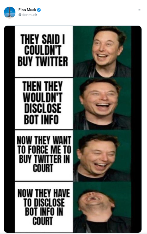 Jetzt droht dem Tesla-CEO eine Vertragsstrafe in Höhe 1 Milliarde US-Dollar. Es könnte jedoch sein, dass Musk die Strafe bewusst in Kauf genommen hat. In mehreren Tweets und mit einem Meme machte sich der Milliardär über den anstehenden Gerichtsprozess lustig.