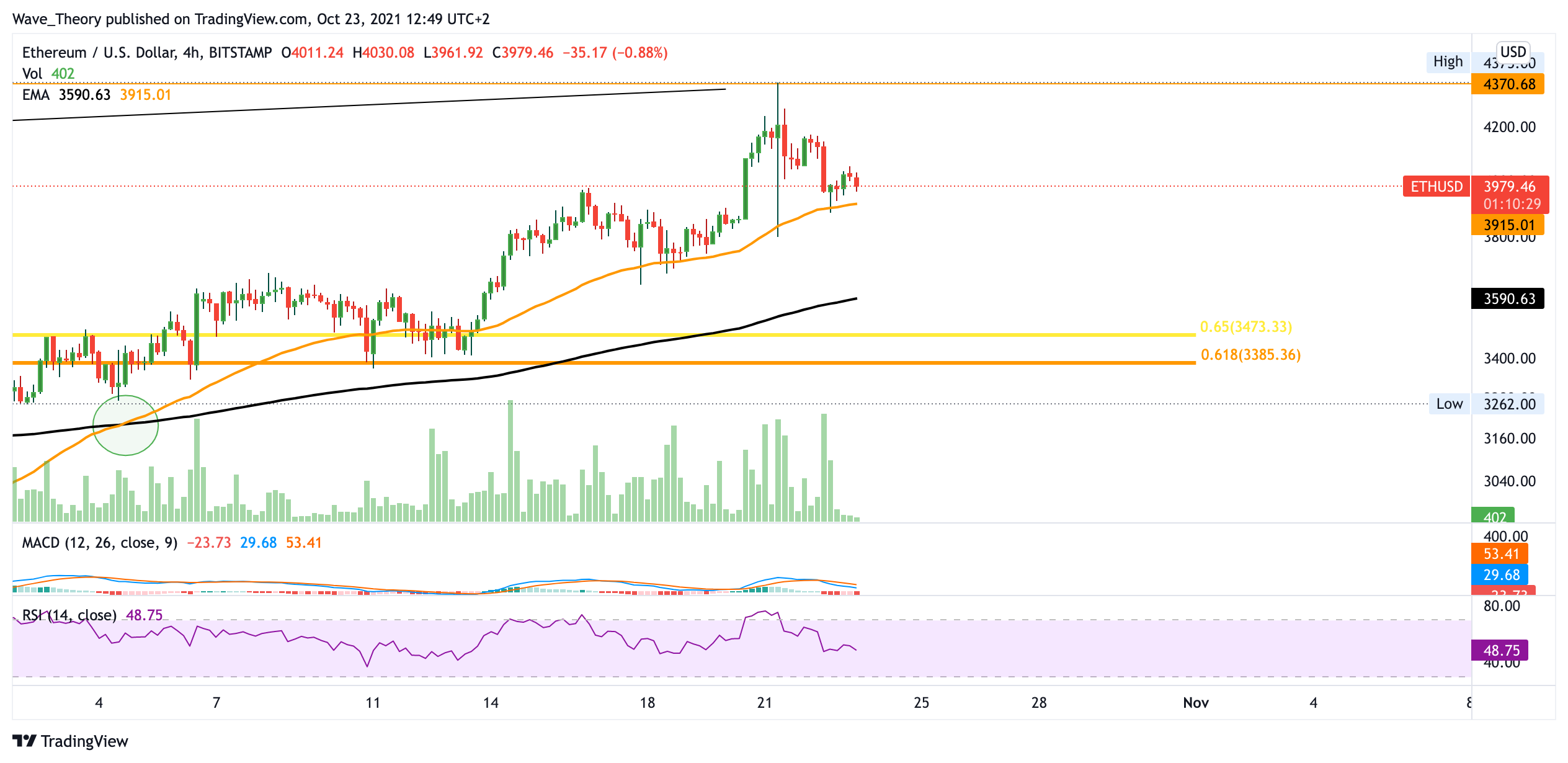 Im 4H Kurs dient der 50-4H-EMA bei rund 3.900 USD bisher tapfer als Unterstützung. Wird dieses Preisniveau verlassen, könnte der ETH Kurs daraufhin auf rund 3.300 USD zurückkehren. Hält die Unterstützung bei rund 3.900 USD erfolgreich, könnte Ethereum erneut den Versuch unternehmen, den Widerstand bei rund 4.400 USD zu brechen. Es gibt also noch Hoffnung für ein neues Allzeithoch in diesem Jahr.