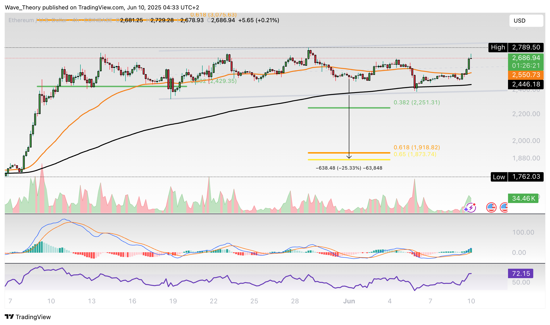 Ethereum-Prognose für Dienstag, 10. Juni 2025: Der Ethereum Kurs hält sich erfolgreich über der 200-Tage-EMA Unterstützung.
