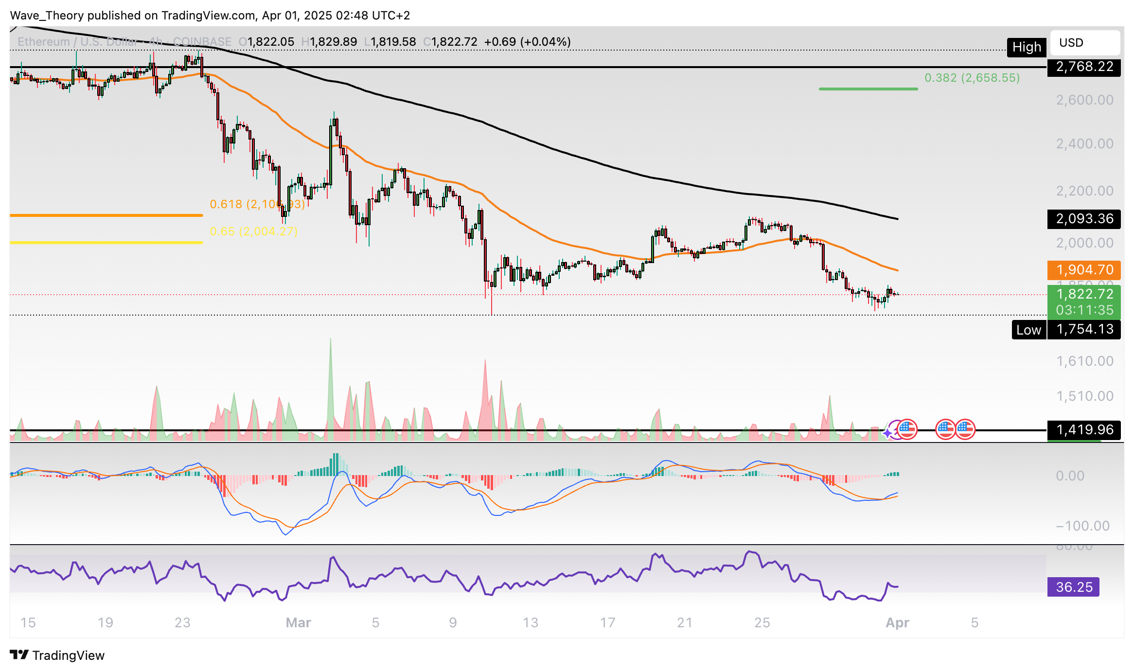 Ethereum-Prognose für Dienstag, 01. April 2025: Der Ethereum Kurs hat die Golden Ratio Unterstützung gebrochen. Damit ist der Bullentrend invalidiert.