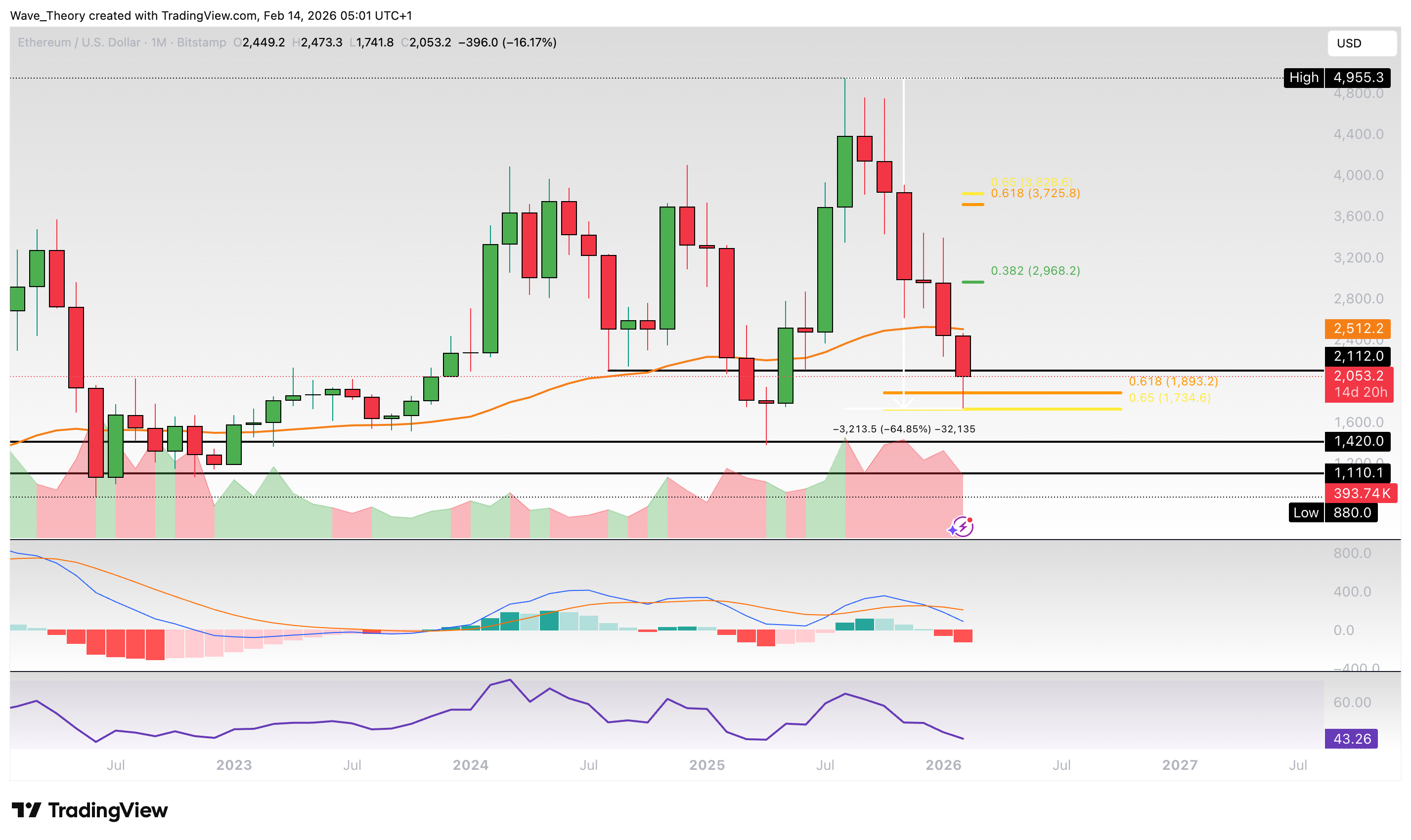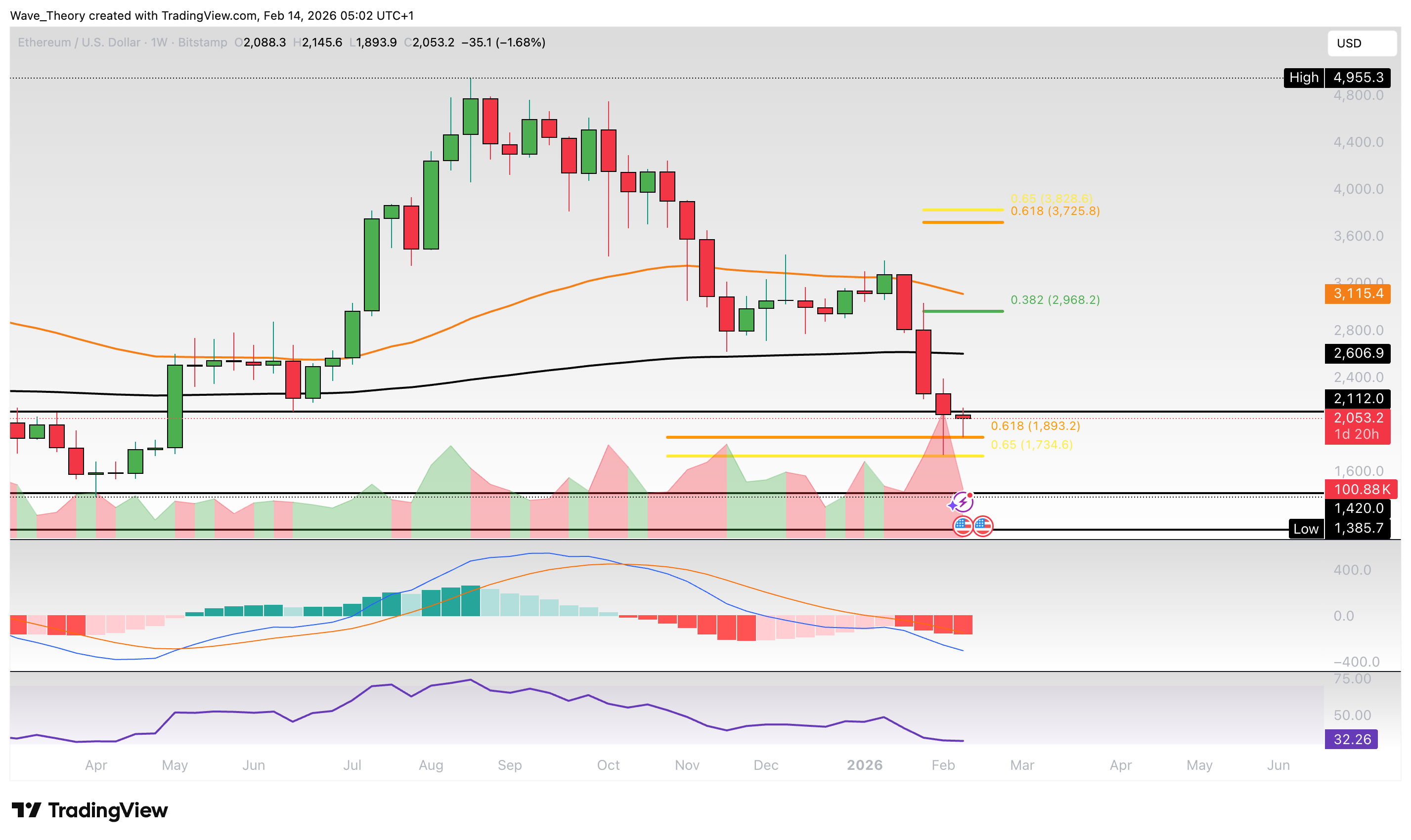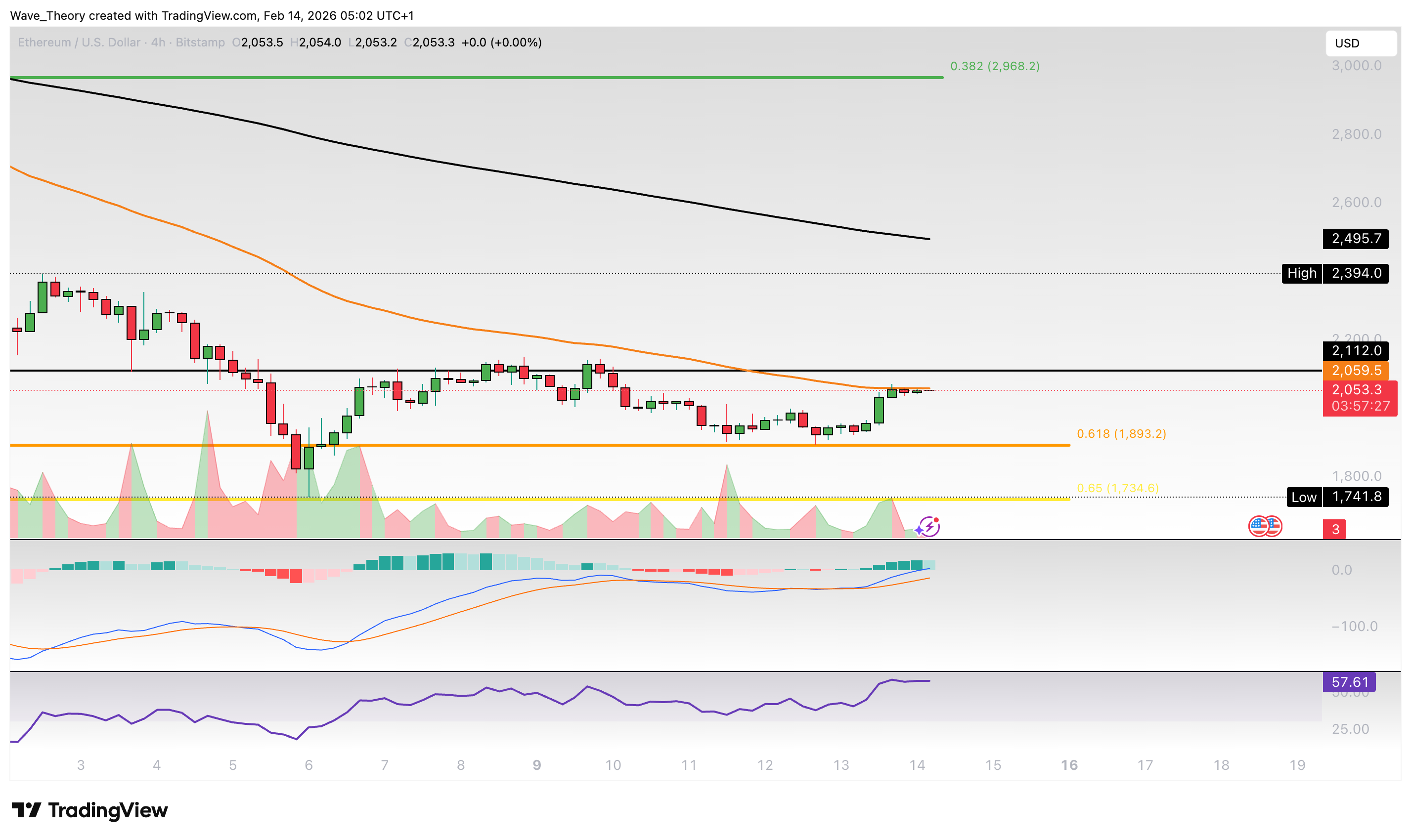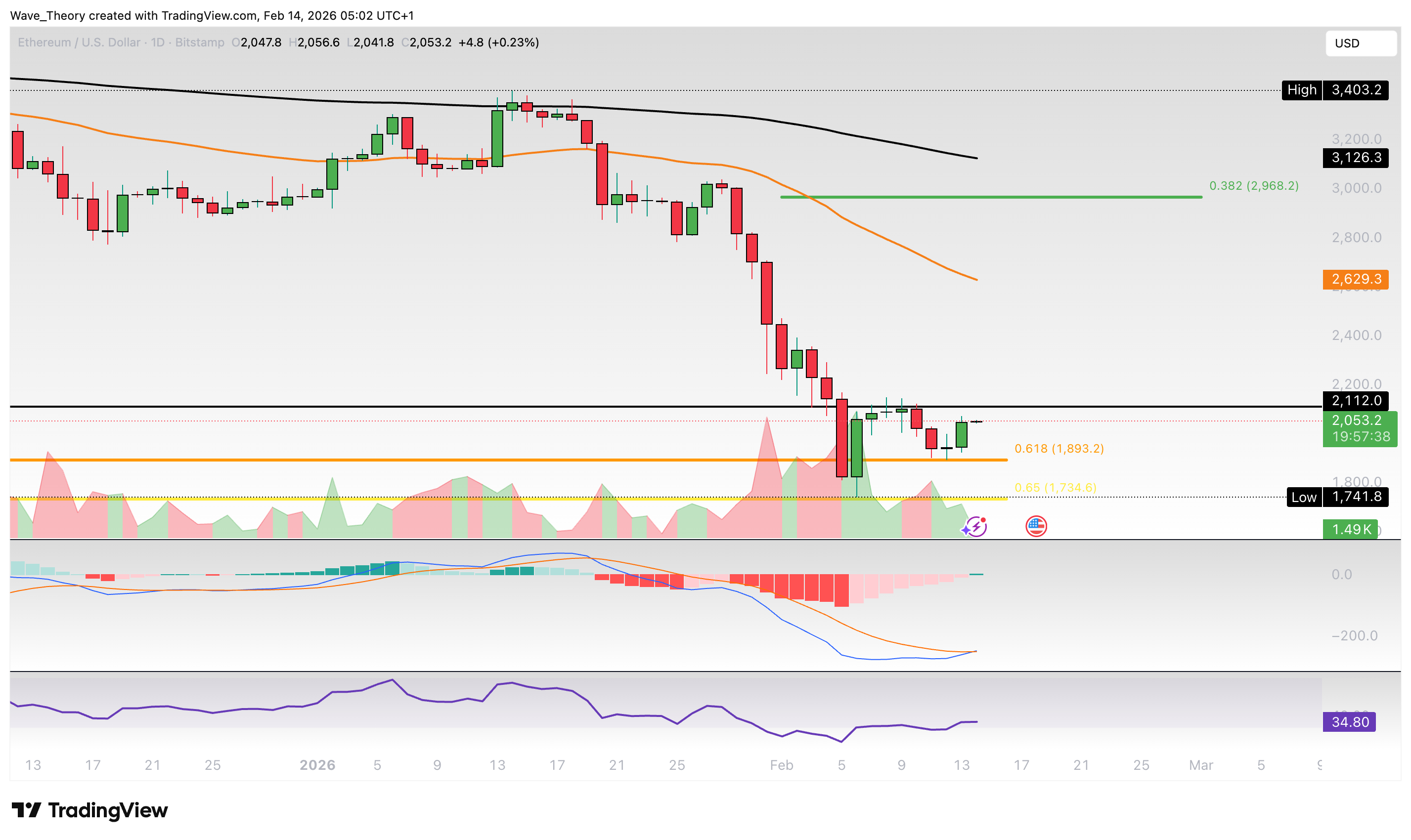 Ethereum-Prognose für Samstag, 14. Februar 2026: Der Ethereum Kurs könnte jetzt bullisch abprallen. Immerhin hat er wichtige Unterstützung erreicht.