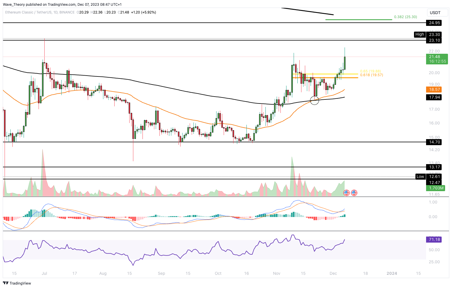 Der Ethereum Classic Kurs konnte den Golden Ratio Widerstand bei rund 19,6 USD brechen