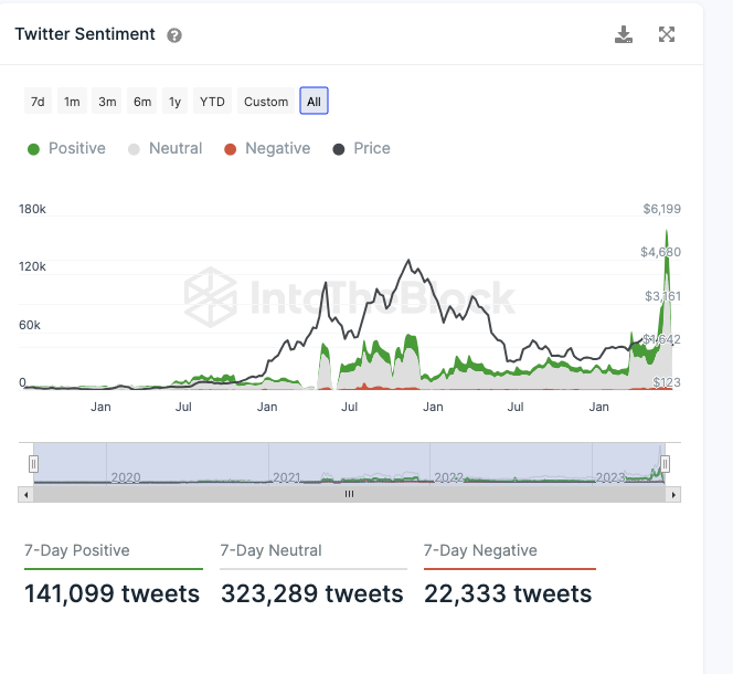 Das Stimmungsbild bezüglich Ethereum ist auch auf Twitter positiv geprägt