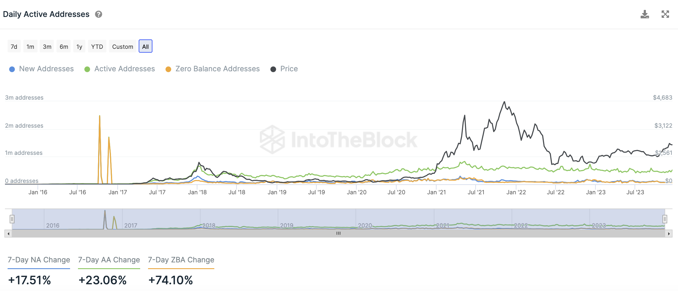 Die Anzahl an aktiven Adressen ist dabei sogar um rund 23 % gestiegen, wohingegen Ethereum Adressen ohne ETH Guthaben sogar um rund 74 % an der Zahl gestiegen sind.
