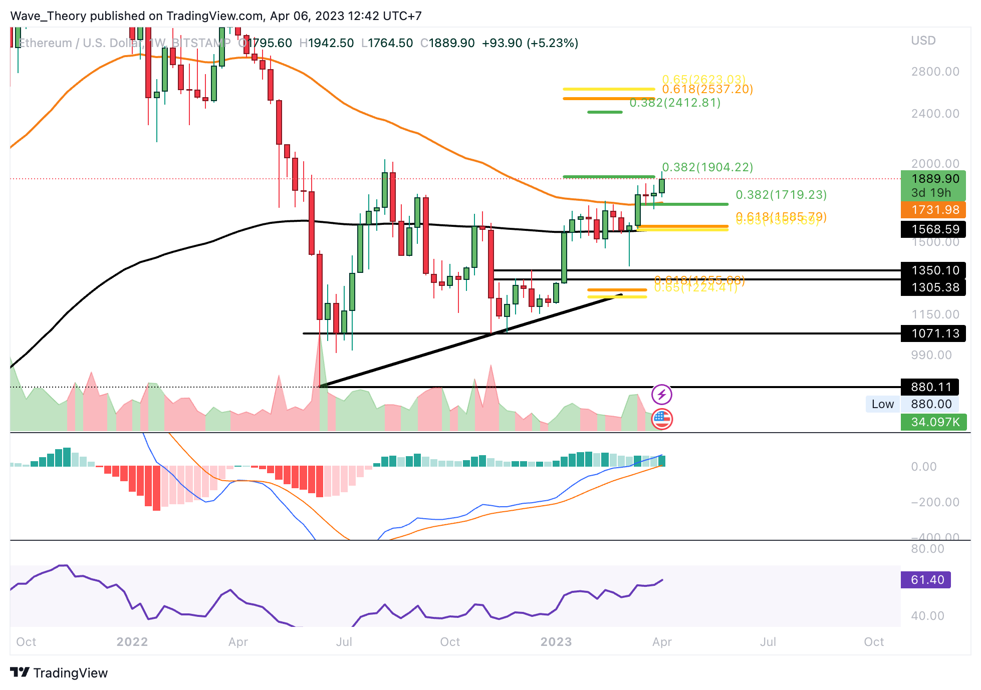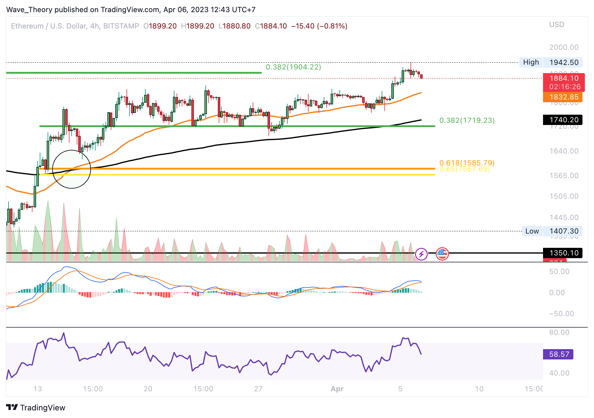 - Ethereum könnte jetzt erneut den Versuch unternehmen, den Fib Widerstand bei rund 1.904 USD ins Visier zu nehmen.