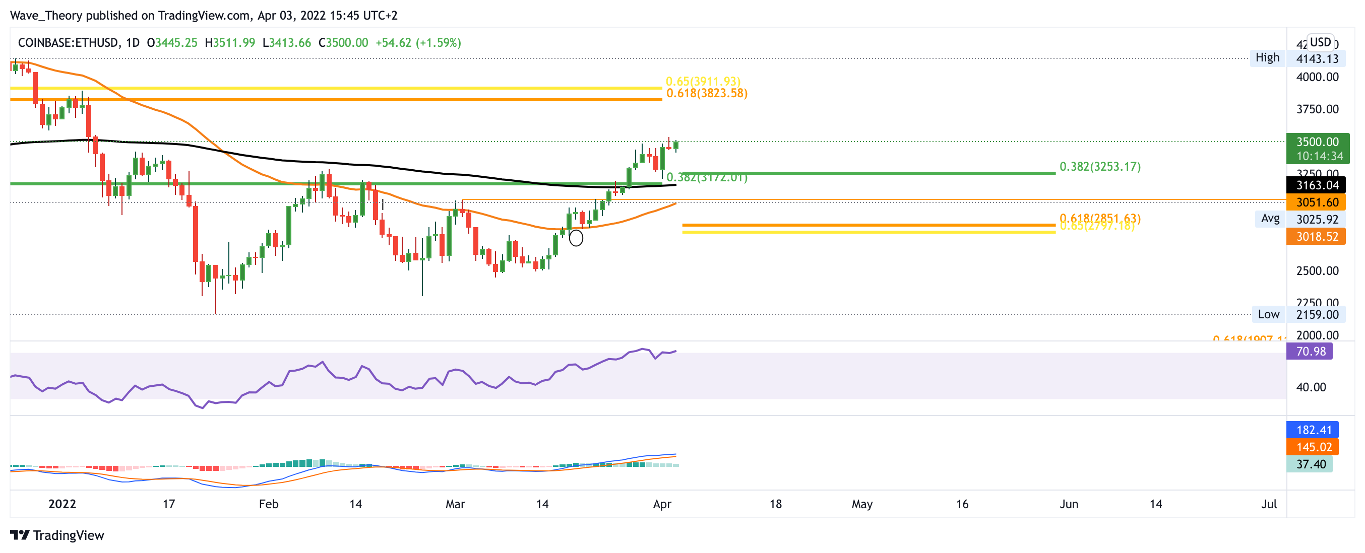 Nach zwei bullischen Monaten beginnt auch der April bullisch für den Ethereum Kurs