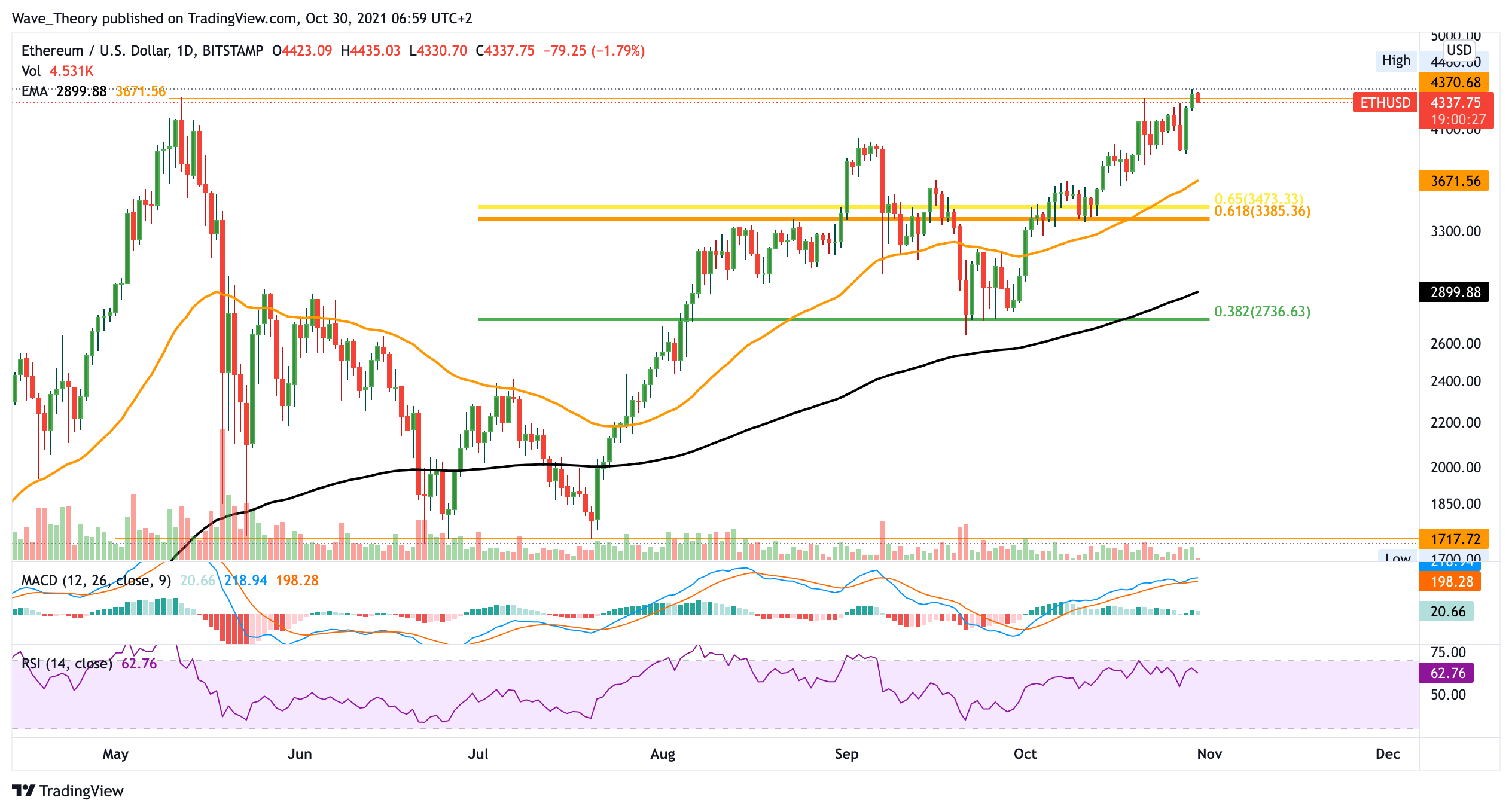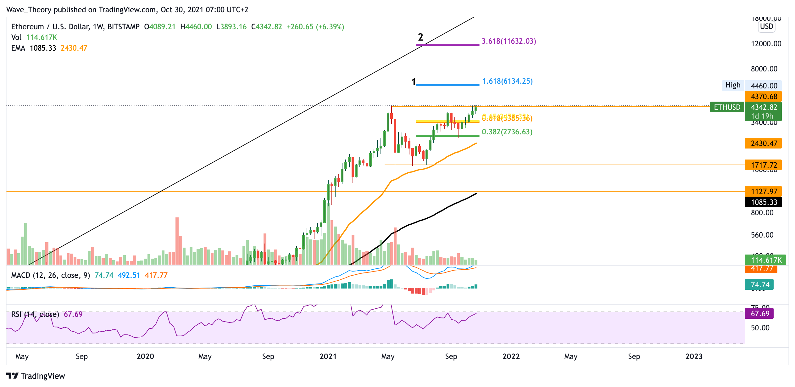 Der Ethereum Kurs bricht das bisherige Allzeithoch und steigt auf 4.460 USD. Steigt der Ethereum Kurs jetzt auf 6.000 USD?