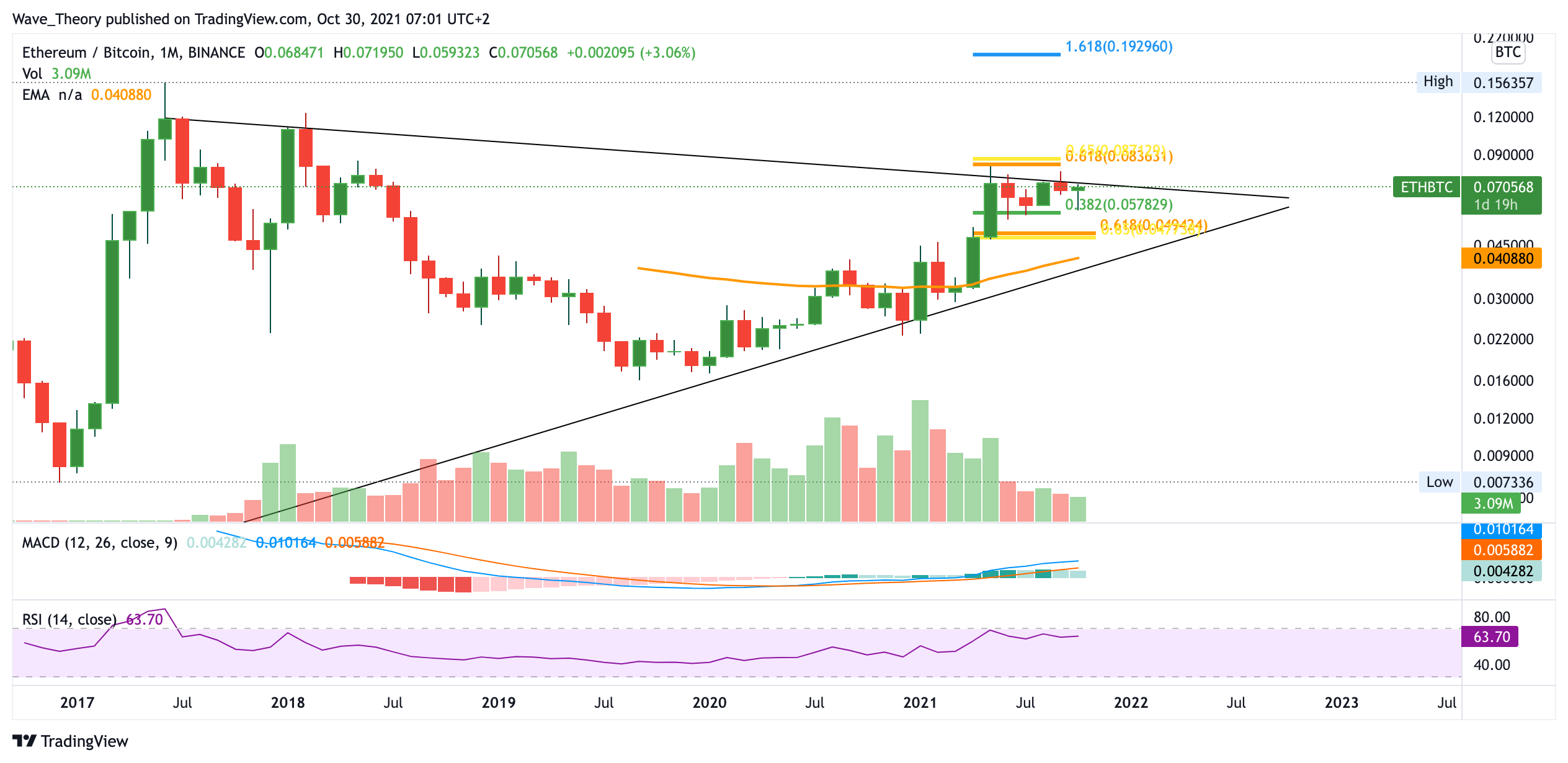 Insgesamt verlief der Oktober bisher aber extrem bullisch für den Ethereum Kurs. Im Monatschart lassen sich keine Anhaltspunkte finden, warum Ethereum seinen Aufwärtstrend nicht fortsetzen sollte.