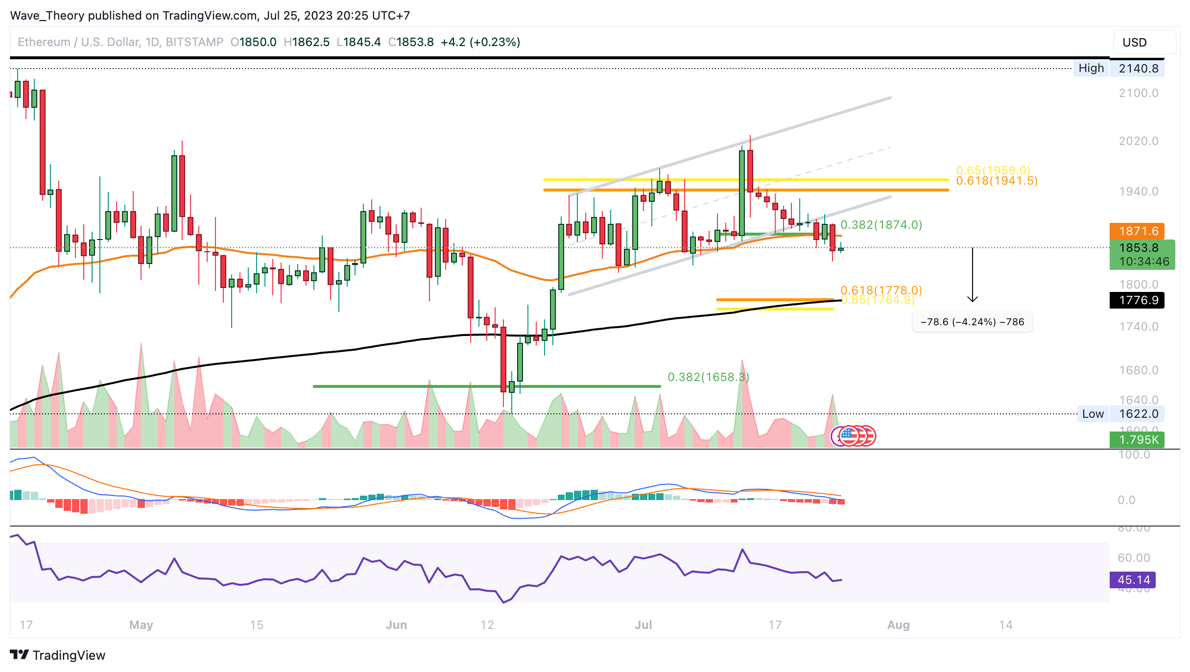 SponsoredDer Ethereum Kurs bricht die 0,382 Fib Unterstützung bei rund 1.874 USD