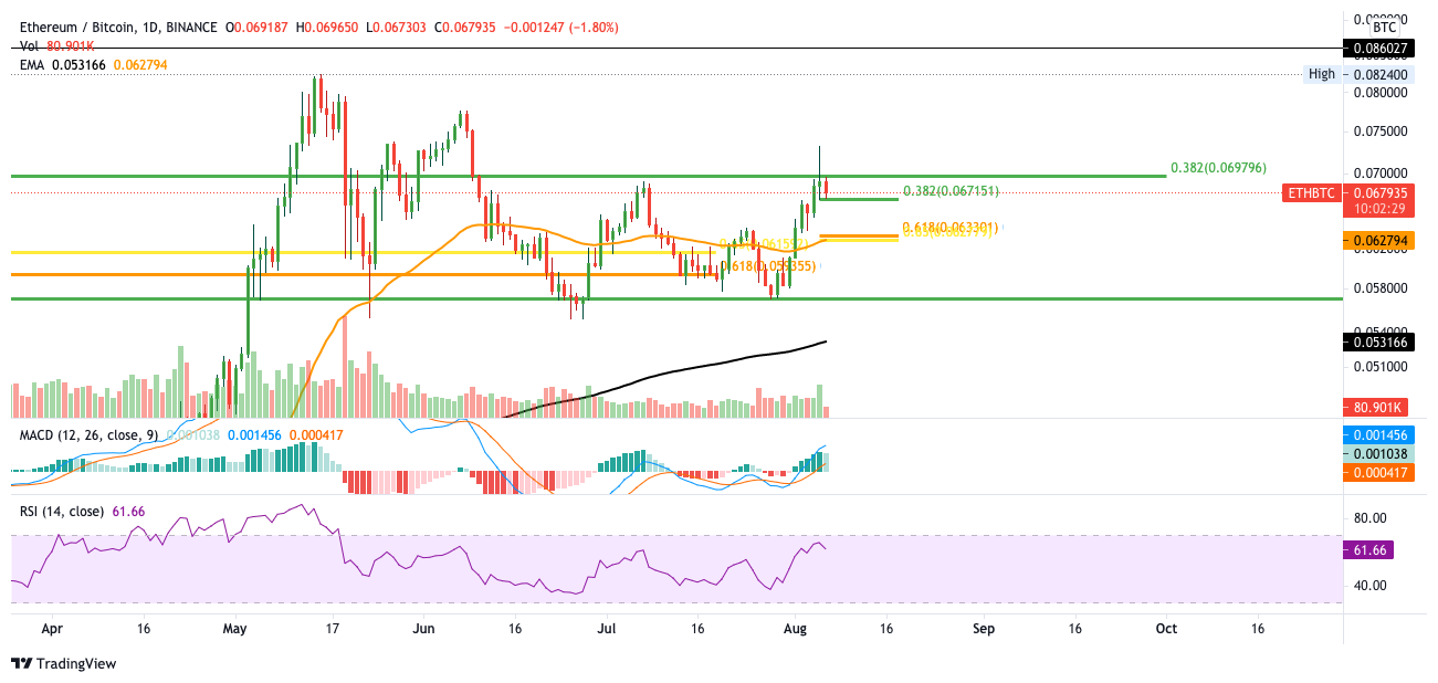 Der ETH/BTC Kurs bleibt sehr bullisch und erreicht das Kursziel von 0,07 BTC