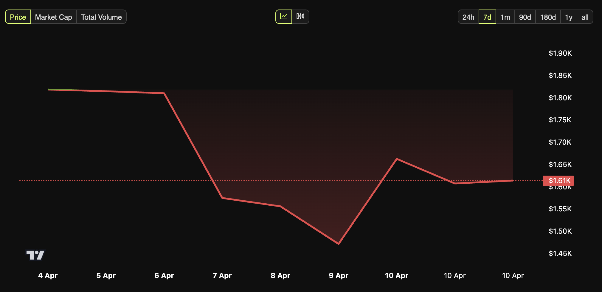 Infolgedessen stieg ETH in den letzten Tagen zweistellig an. Aktuell wird ETH bei 1.613 USD gehandelt, was einem Anstieg von 13,7 Prozent entspricht.