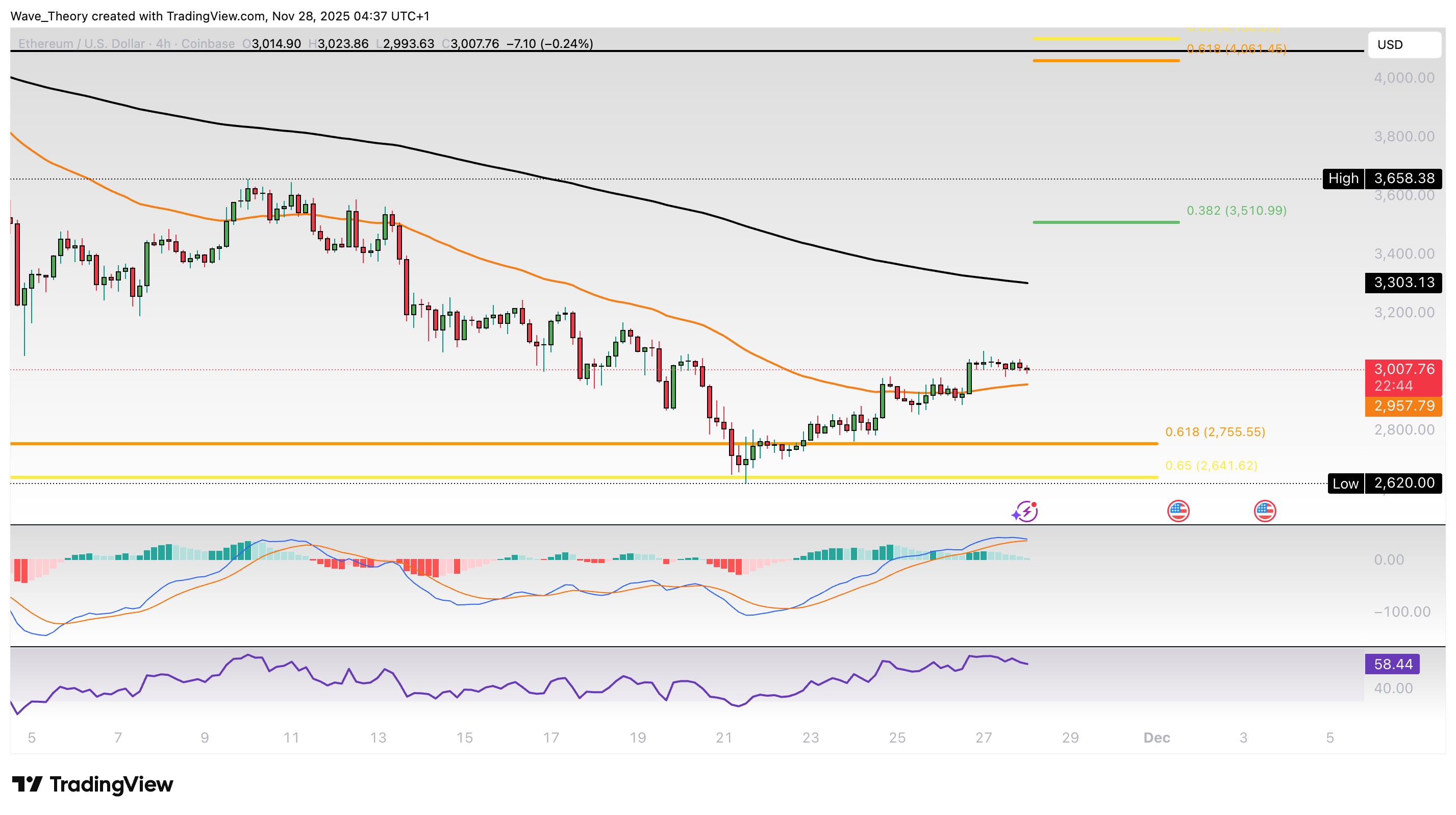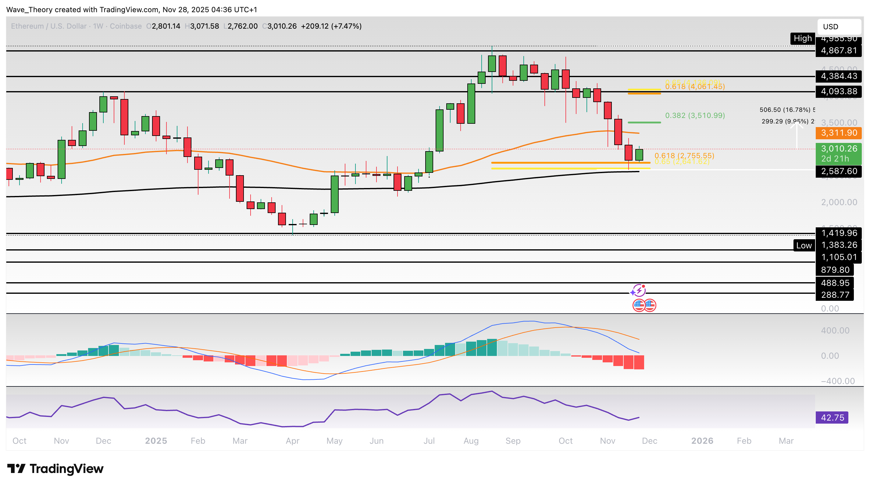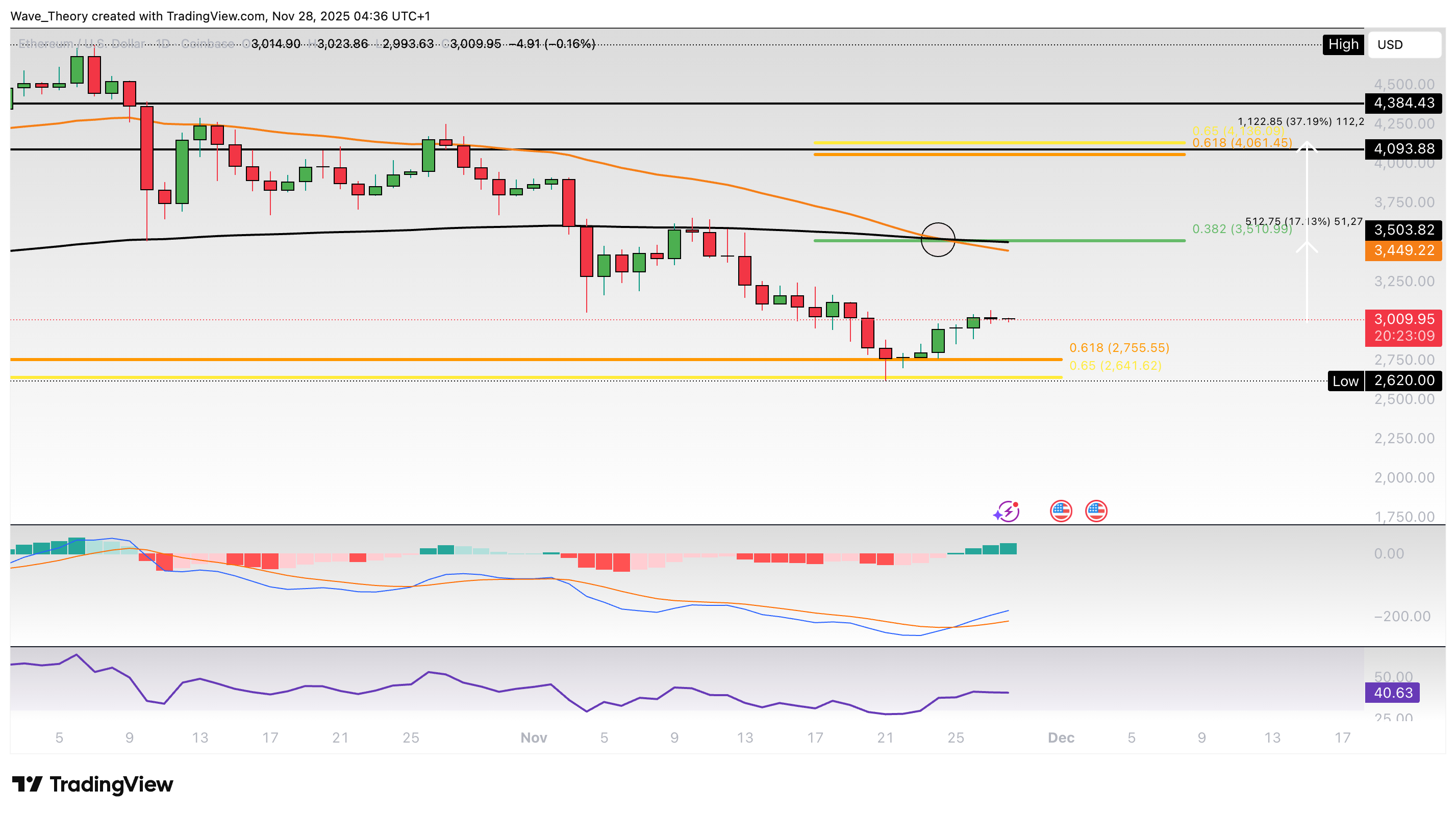 Ethereum-Prognose für Freitag, 28. November 2025: Der Ethereum Kurs konnte die Golden Ratio Unterstützung erreichen und daran bullisch abprallen.