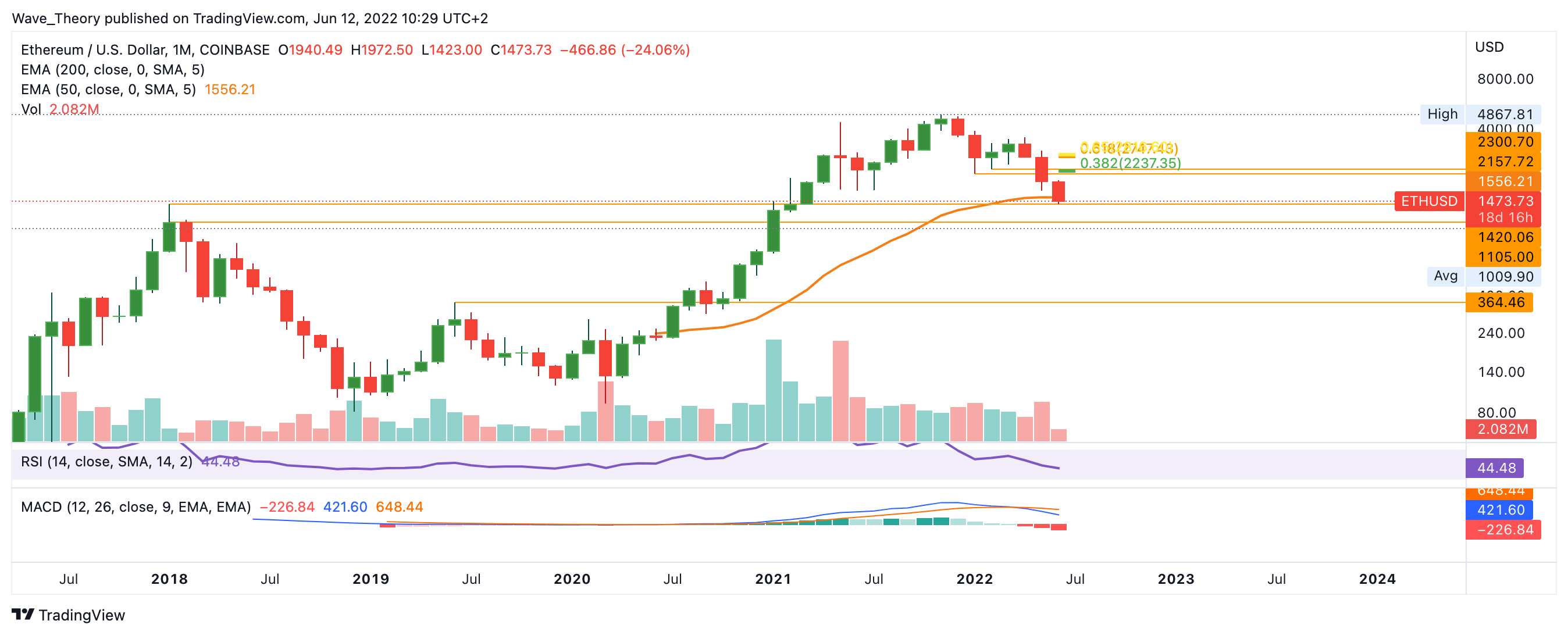 Insgesamt hat der Ethereum gute Chancen darauf, zwischen 1.105 – 1.420 USD einen Boden zu finden, denn mit dem Bruch der Golden Ratio ist dieser Preisbereich nun der heißeste Kandidat für eine Bodenformation.