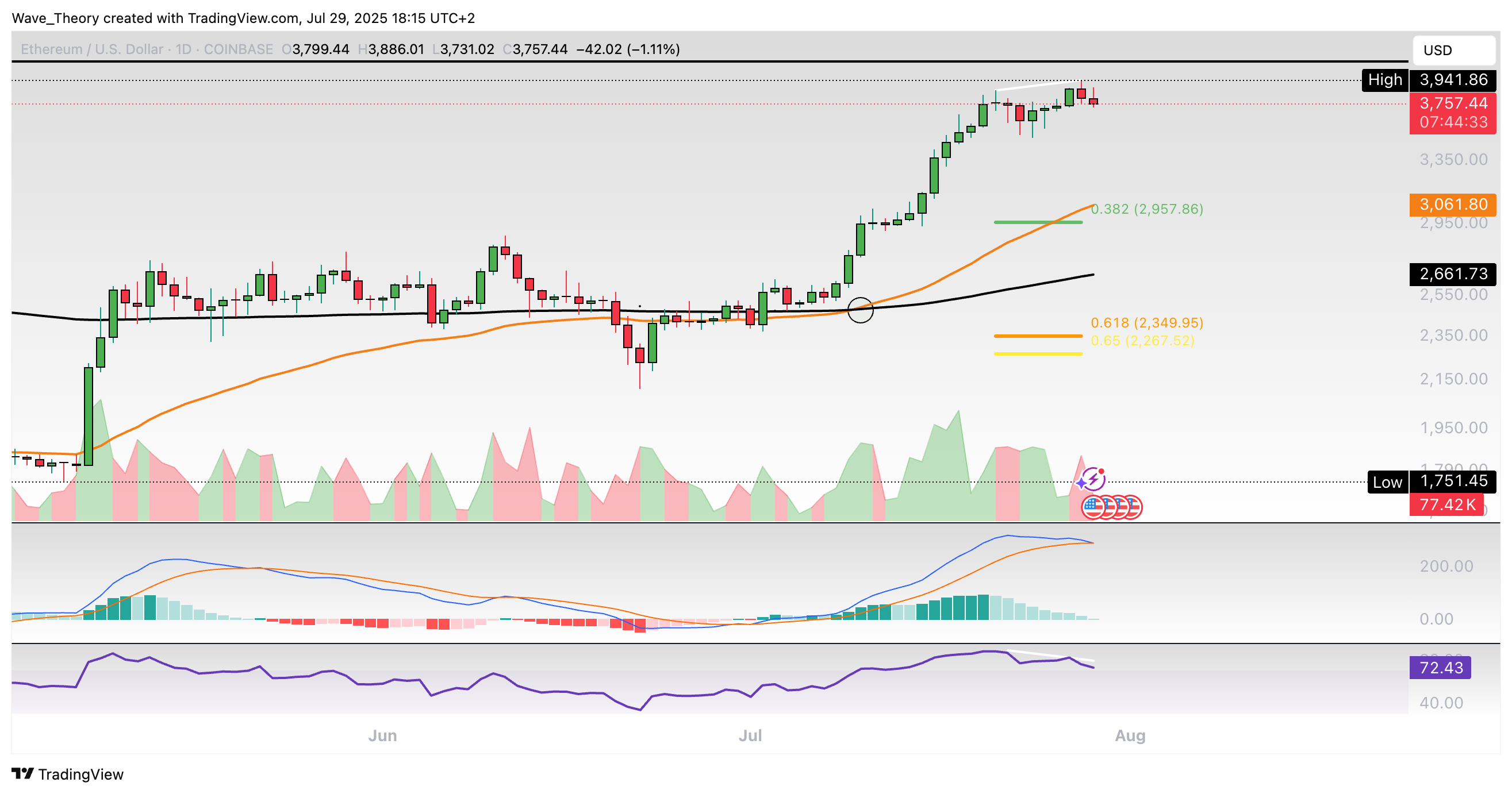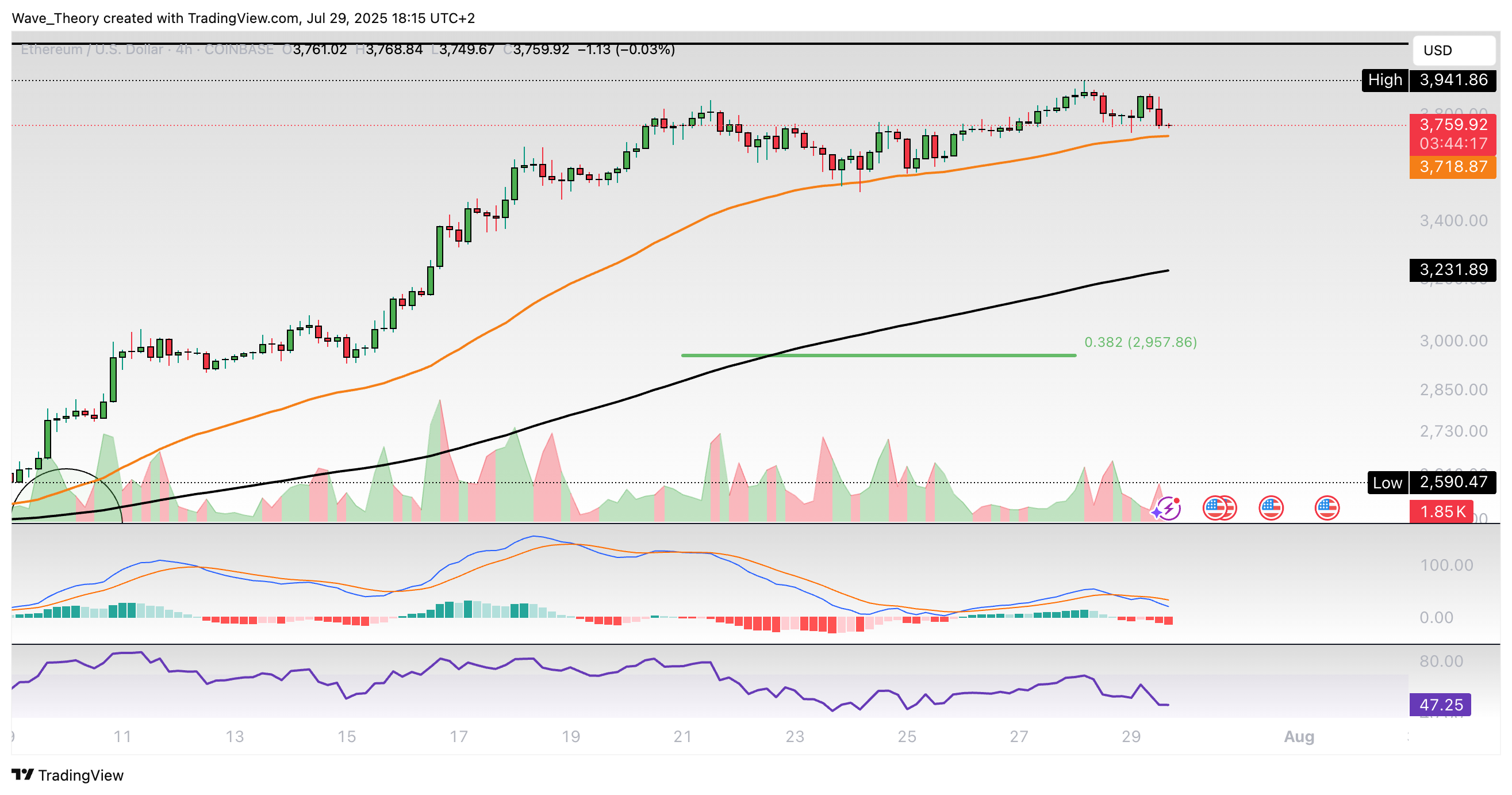Ethereum-Prognose für Dienstag, 29. Juli 2025: Der Ethereum Kurs könnte jetzt eine Korrektur einleiten. So zeigen sich die Indikatoren bereits bärisch.