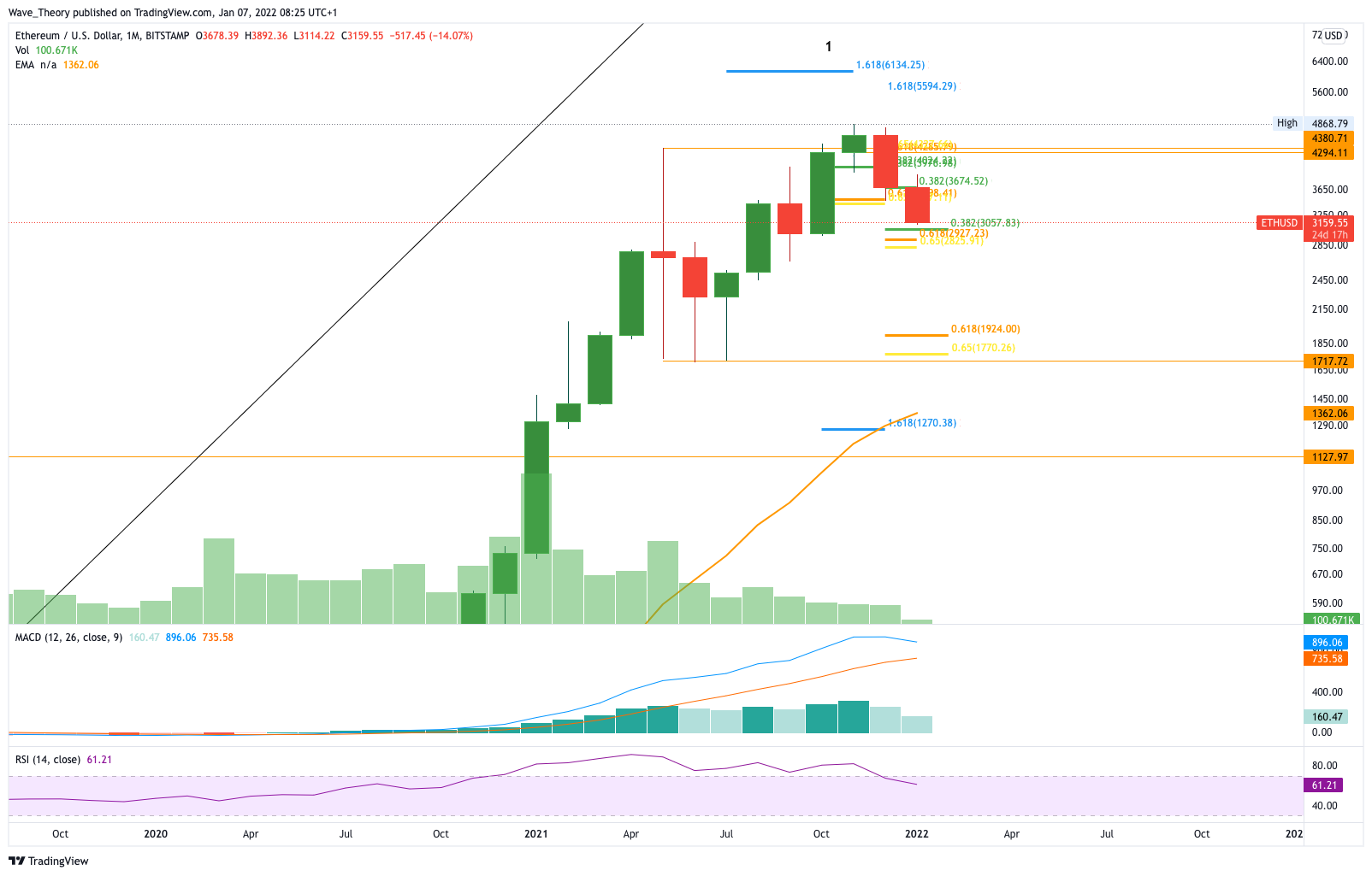 Sollte Ethereum durch 3.000 USD durchbrechen, findet er spätestens bei rund 1.300 USD massive Unterstützung. Dort verläuft nicht nur ein wichtiges Fib Niveau, sondern auch der 200-Wochen-EMA und 50-Monate-EMA.