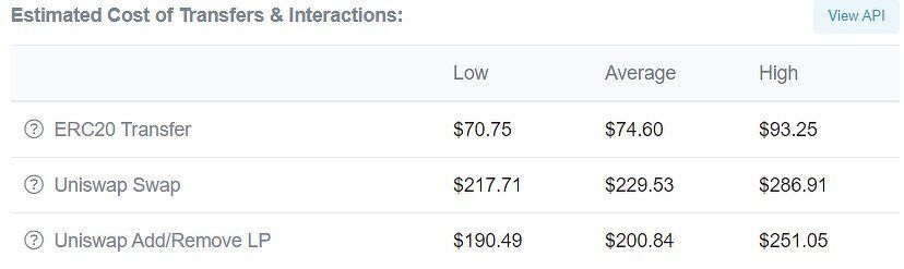 Ein TokenSwap auf der DeFi-Exchange Uniswap kostet zurzeit zwischen 217 und 286 US-Dollar, je nach gewünschter Transaktionsgeschwindigkeit. Uniswap ist zurzeit einer der größten dezentralen Exchanges – abgesehen vom Ethereum-Netzwerk.