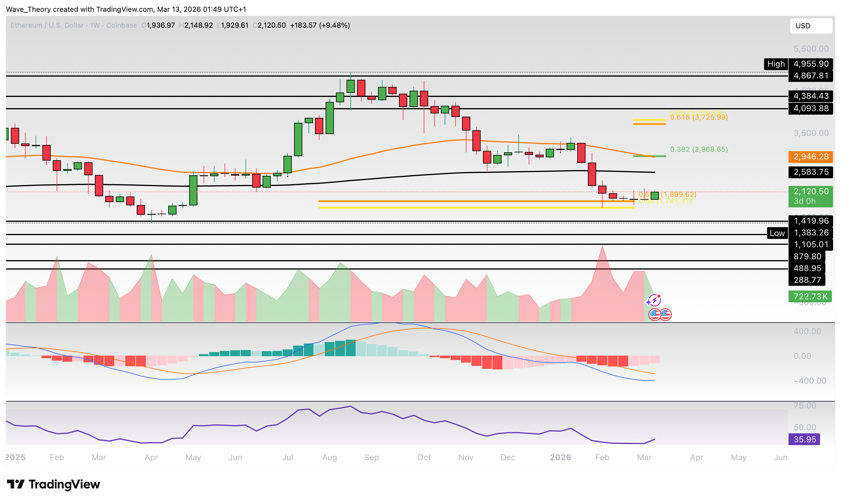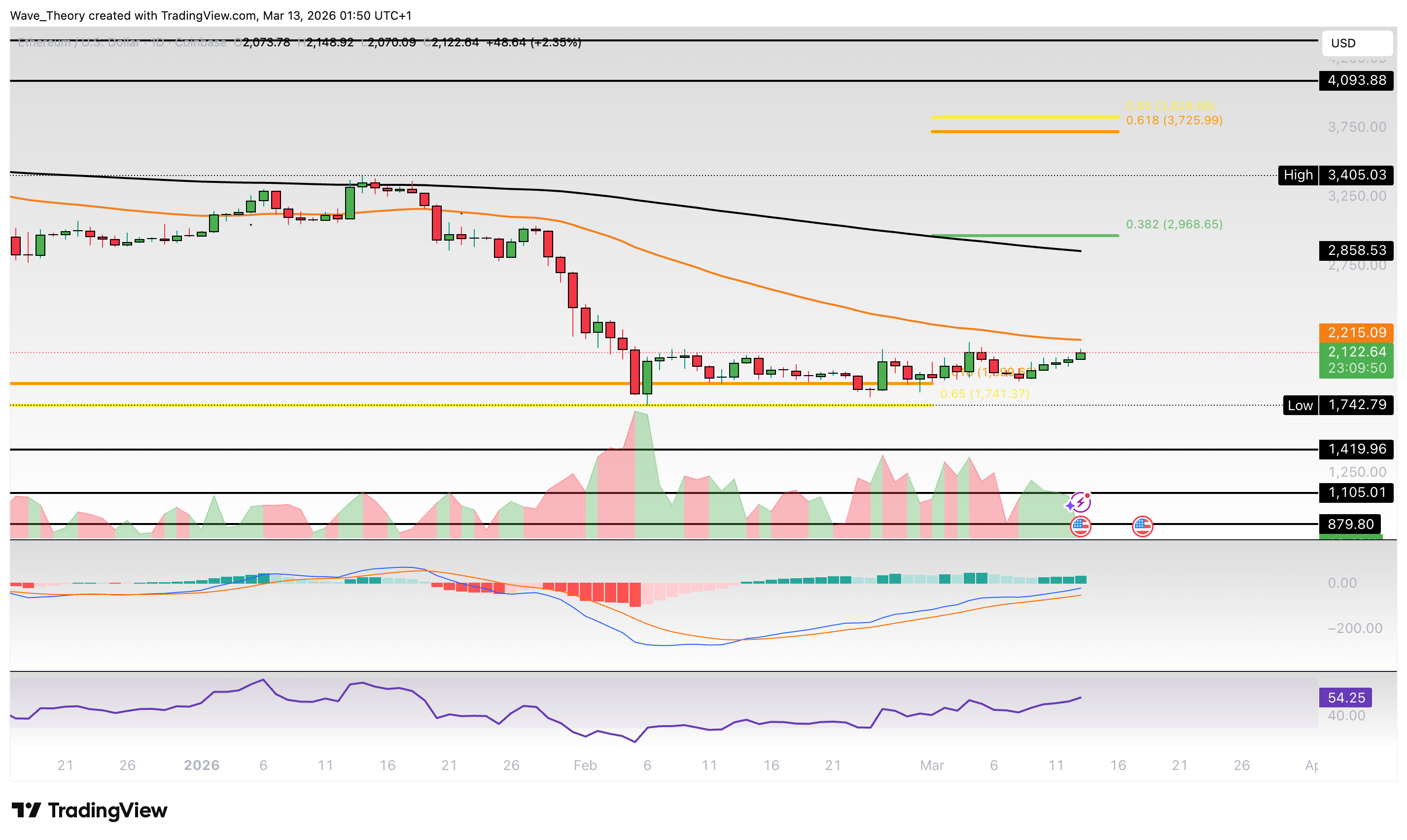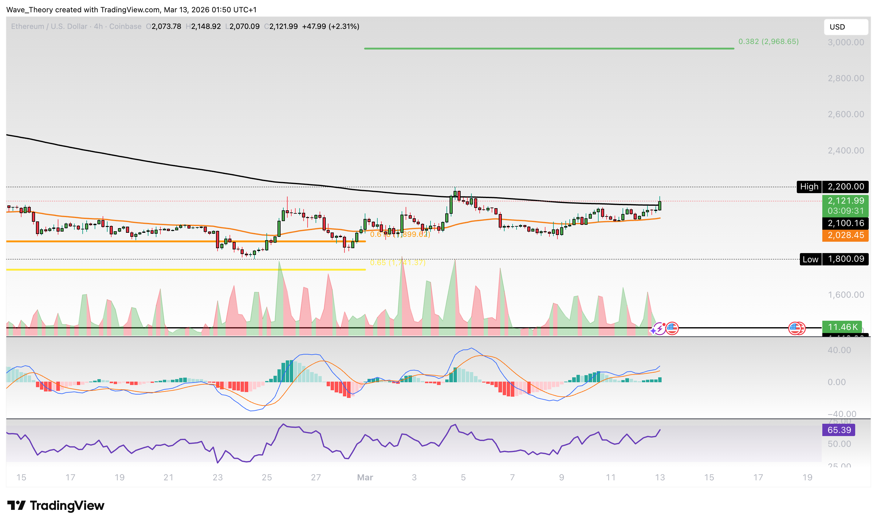 Ethereum-Prognose für Samstag, 14. März 2026: Der Ethereum Kurs prallt erfolgreich an der Golden Ratio Unterstützung ab. Steigt er jetzt zum nächsten Widerstand?