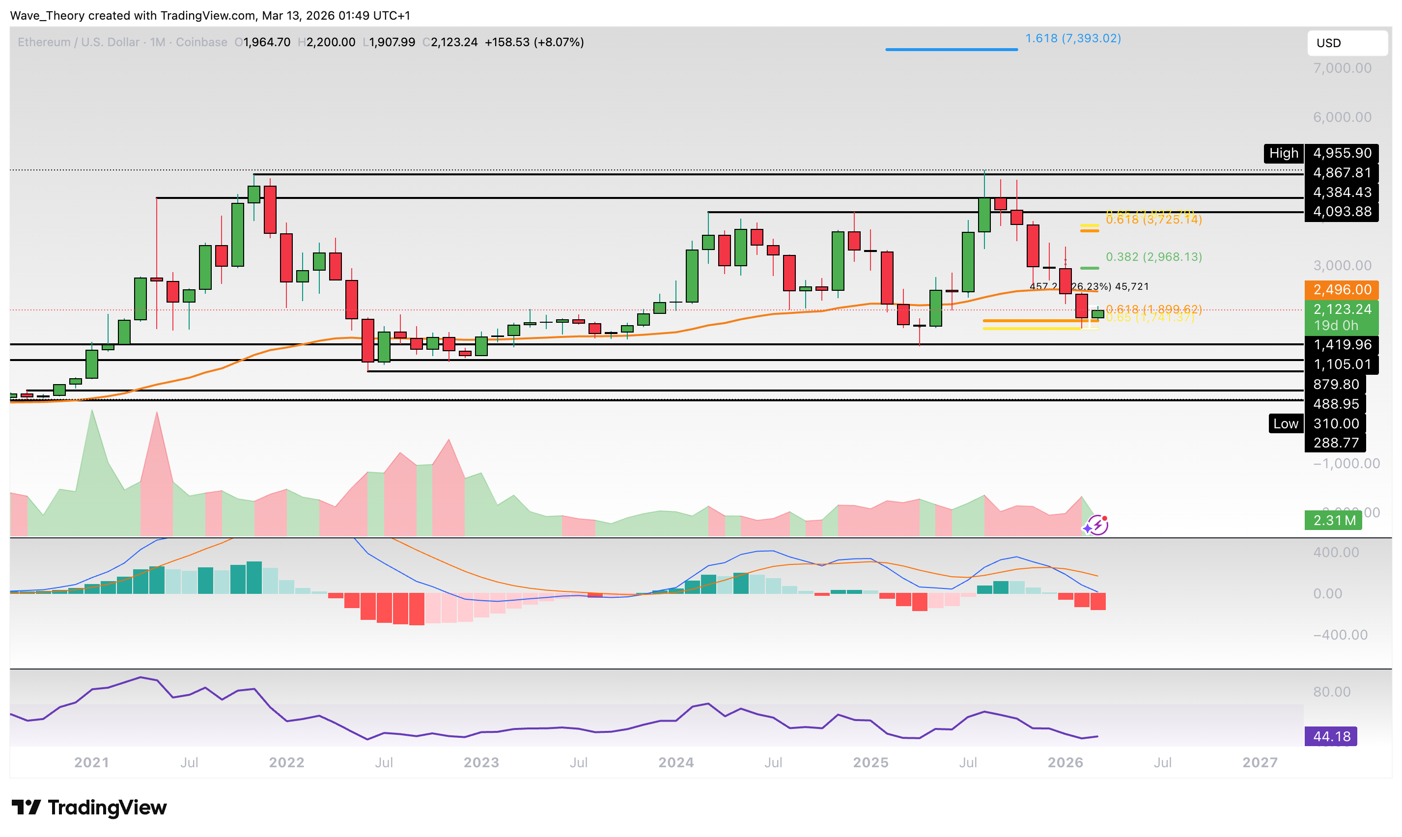 In diesem Fall könnte Ethereum das Allzeithoch bei rund 4.955 USD erneut ansteuern oder sogar überschreiten. Im Monatschart überwiegen derzeit jedoch die bärischen Signale.