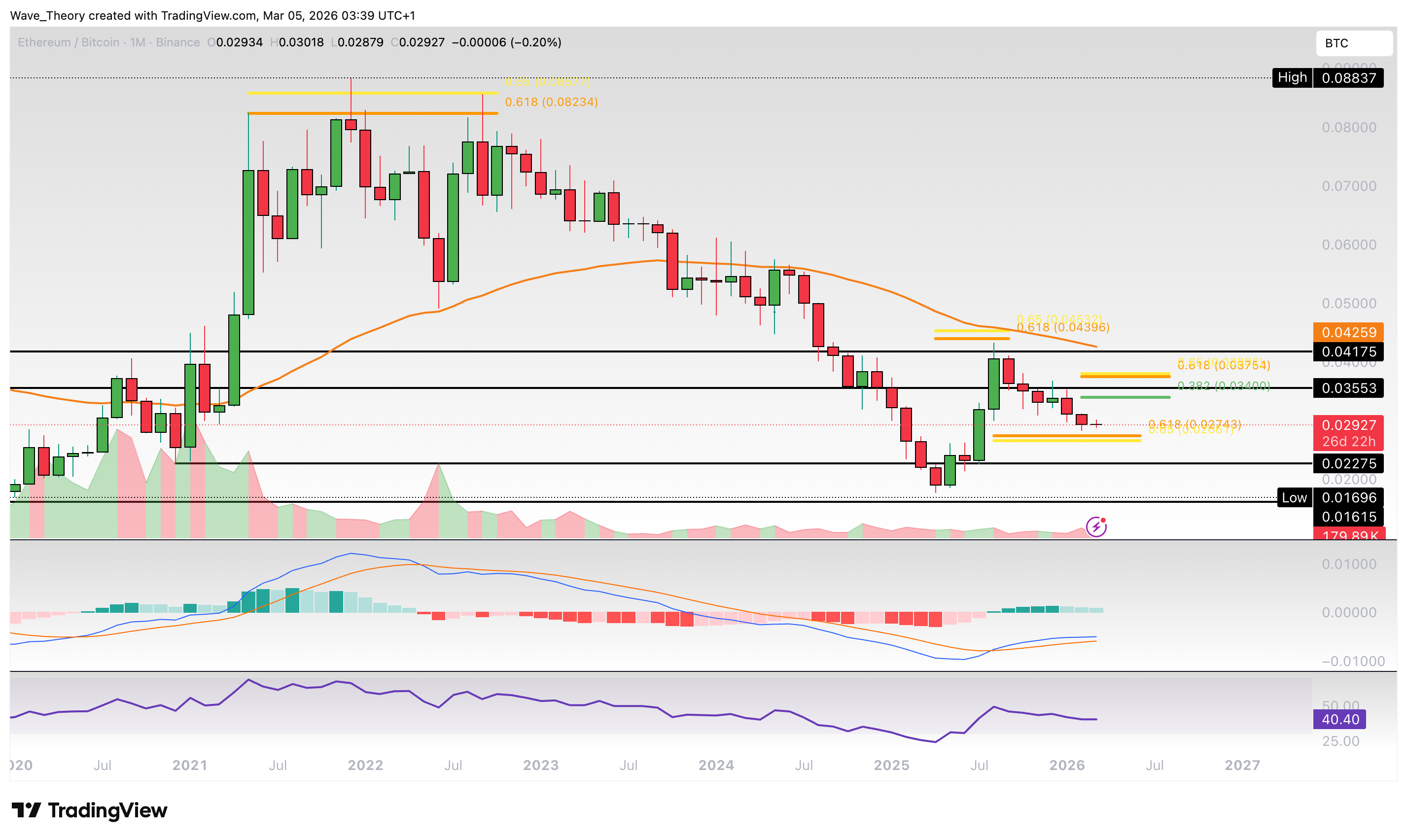 Darüber hinaus liegt am Golden Ratio bei rund 0,038 BTC der nächste signifikante Golden Ratio Widerstand. Bricht Ethereum diese Widerstände, wartet am 50-Monate-EMA bei rund 0,0426 BTC der nächste signifikante Widerstand.