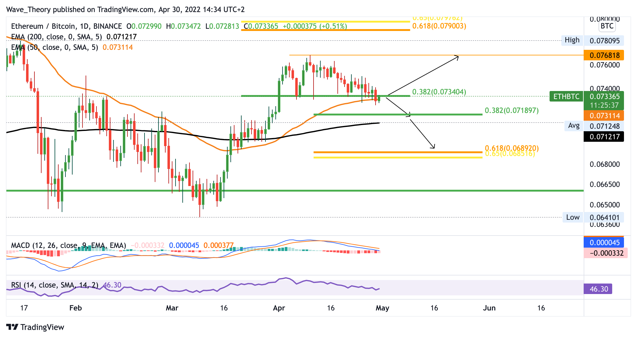 Gegen BTC findet Ethereum am 50-Tage-EMA Unterstützung