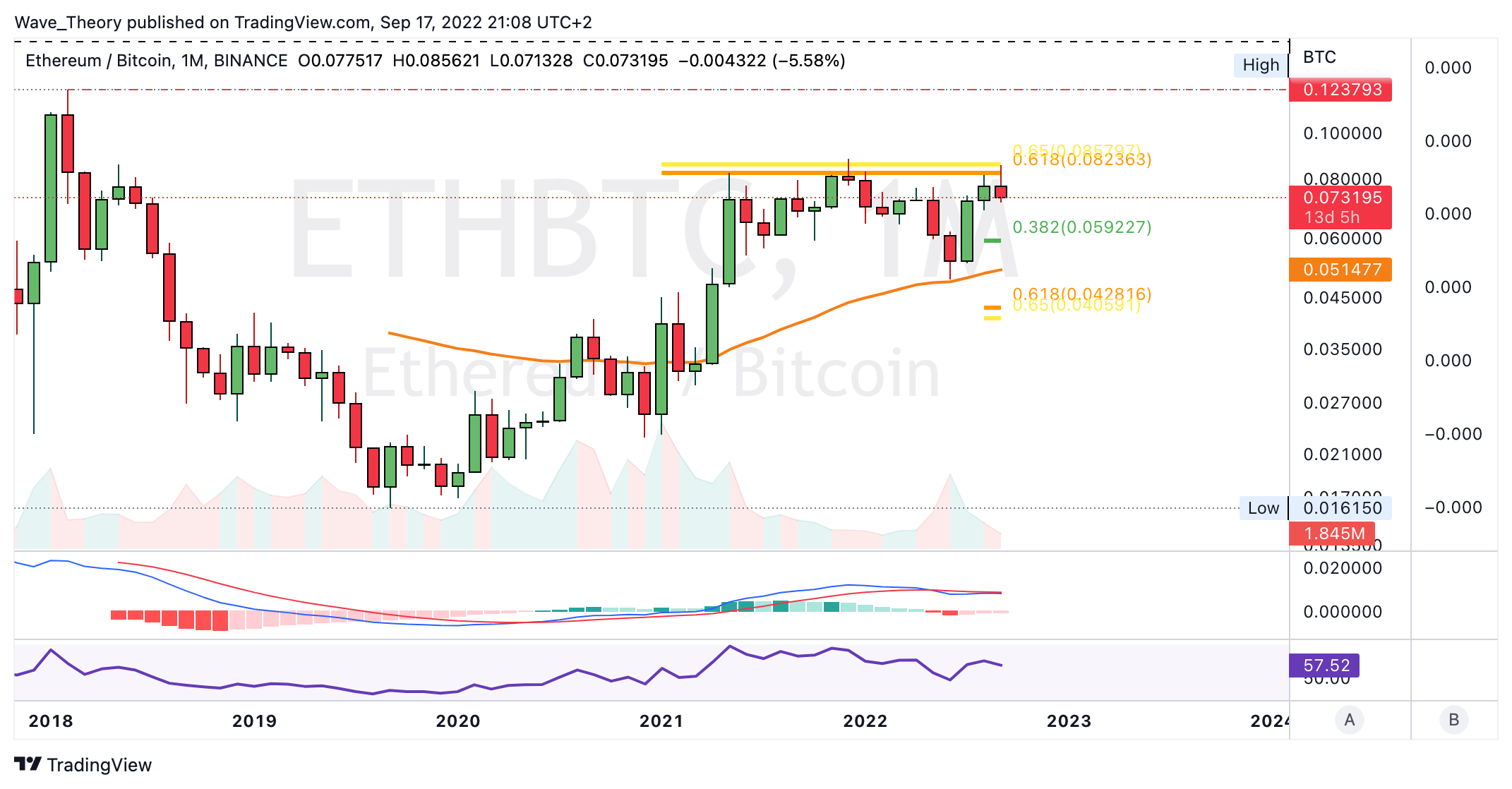 Gegen BTC scheint der ETH Kurs jetzt am Golden Ratio Widerstand bärisch abgewiesen zu werden