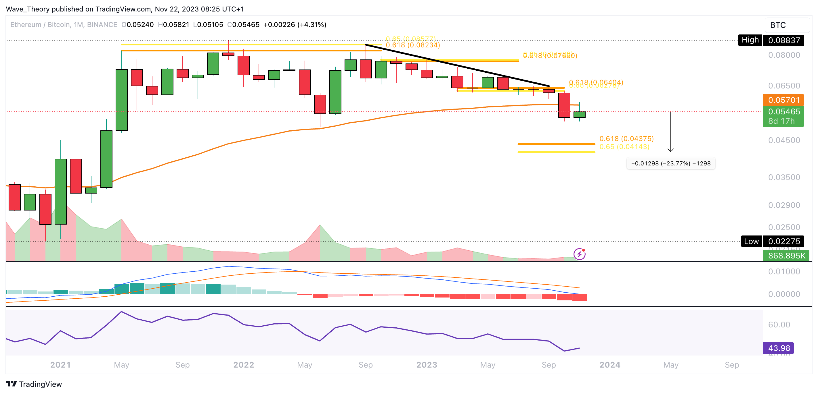 Gegen BTC könnte der Ethereum Kurs zur Golden Ratio Unterstützung bei rund 0,043 BTC korrigieren