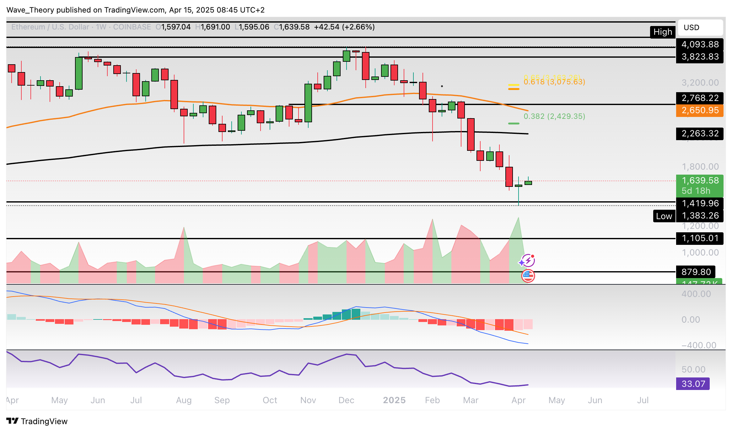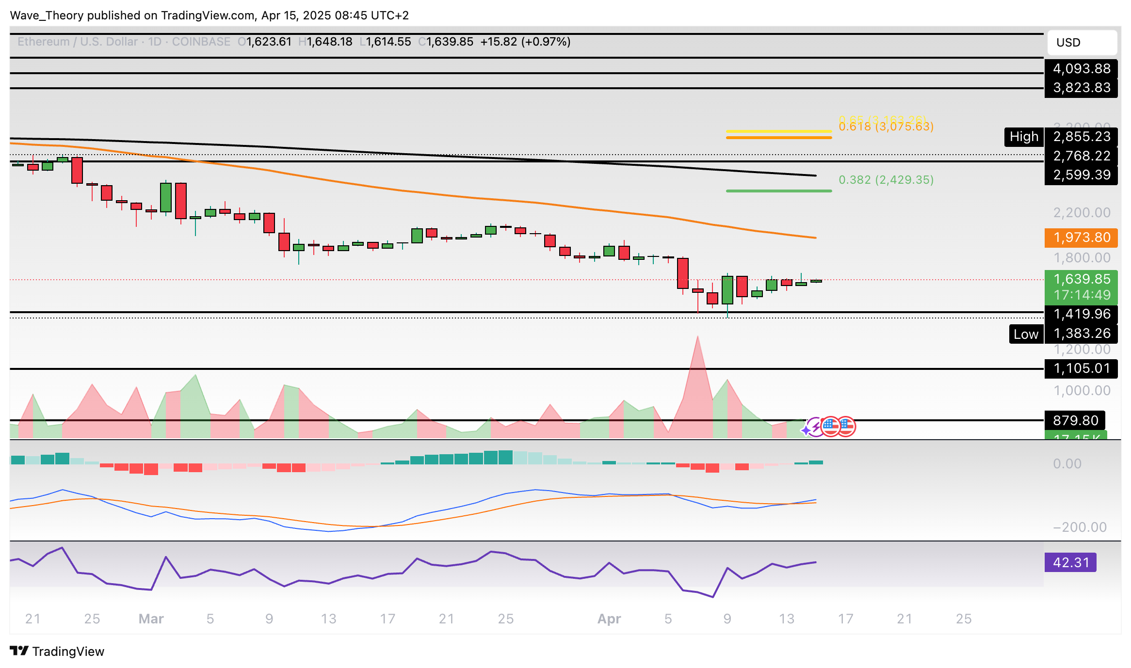 Ethereum-Prognose für Dienstag, 15. April 2025: Der Ethereum Kurs scheint an der Unterstützung bullisch abprallen zu können.