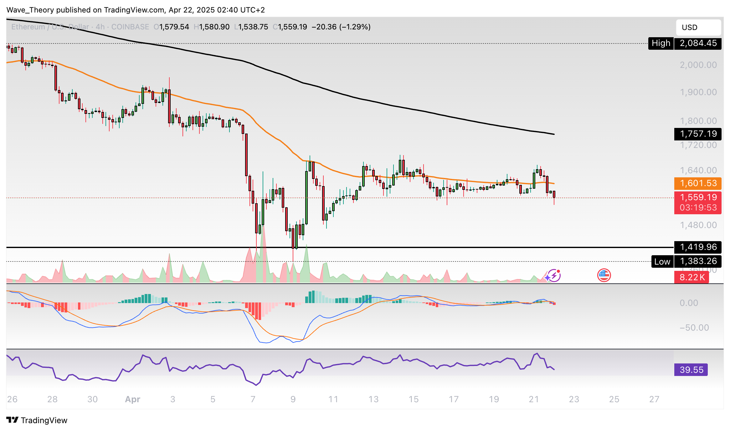 Ethereum-Prognose für Dienstag, 22. April 2025: Der Ethereum Kurs stößt auf signifikante Unterstützung und scheint bullisch abzuprallen.