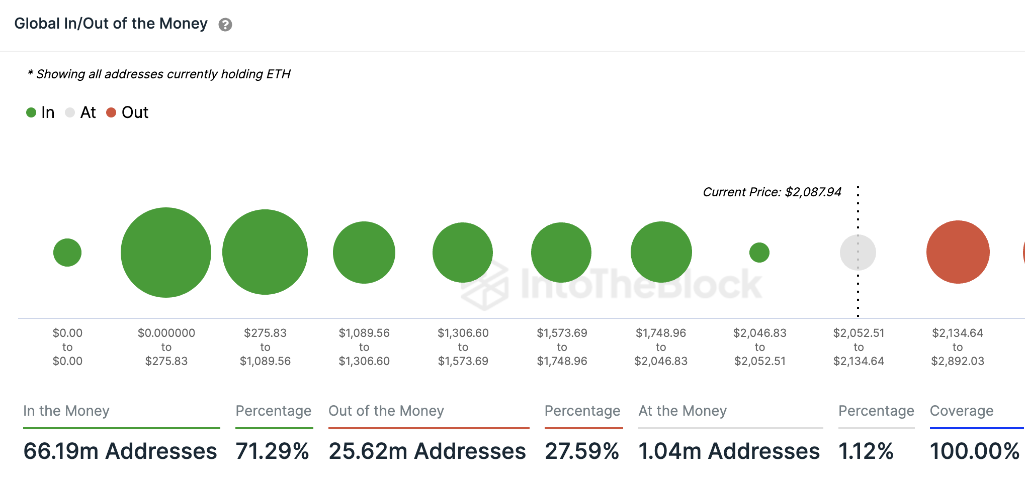 Die On-Chain Daten von InToTheBlock offenbaren, dass sich rund 71,3 % der Ethereum Wallets im Plus befinden. Das bedeutet, dass die Eigentümer Ethereum zu einem Kurs unter dem aktuellen Preisniveau erworben haben. Je mehr Token Holder im Plus sind, desto stärker könnte der Verkaufsdruck werden – sofern die Unsicherheit am Markt anhält.