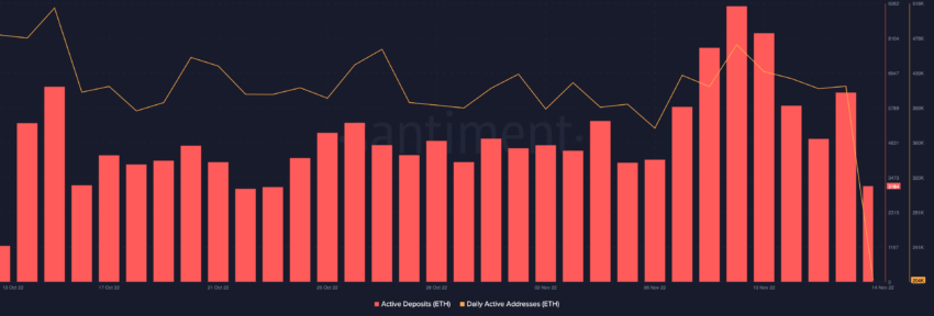 Allerdings ging die Zahl der täglich aktiven Adressen in den letzten Wochen zurück, während die Zahl der ETH-Einzahlungen deutlich zunahm. Das ist ein Zeichen dafür, dass der Token weniger für das Netzwerk selbst und stattdessen für Transaktionen an Krypto-Börsen verwendet wird, um ETH zu verkaufen.