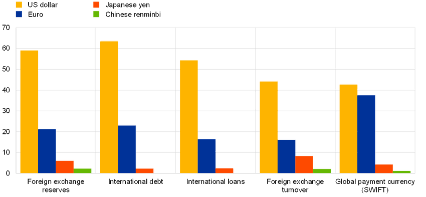 Ferner gibt die EZB an, dass der Euro nach wie vor die zweitwichtigste Währung im globalen Finanzsystem darstellt: