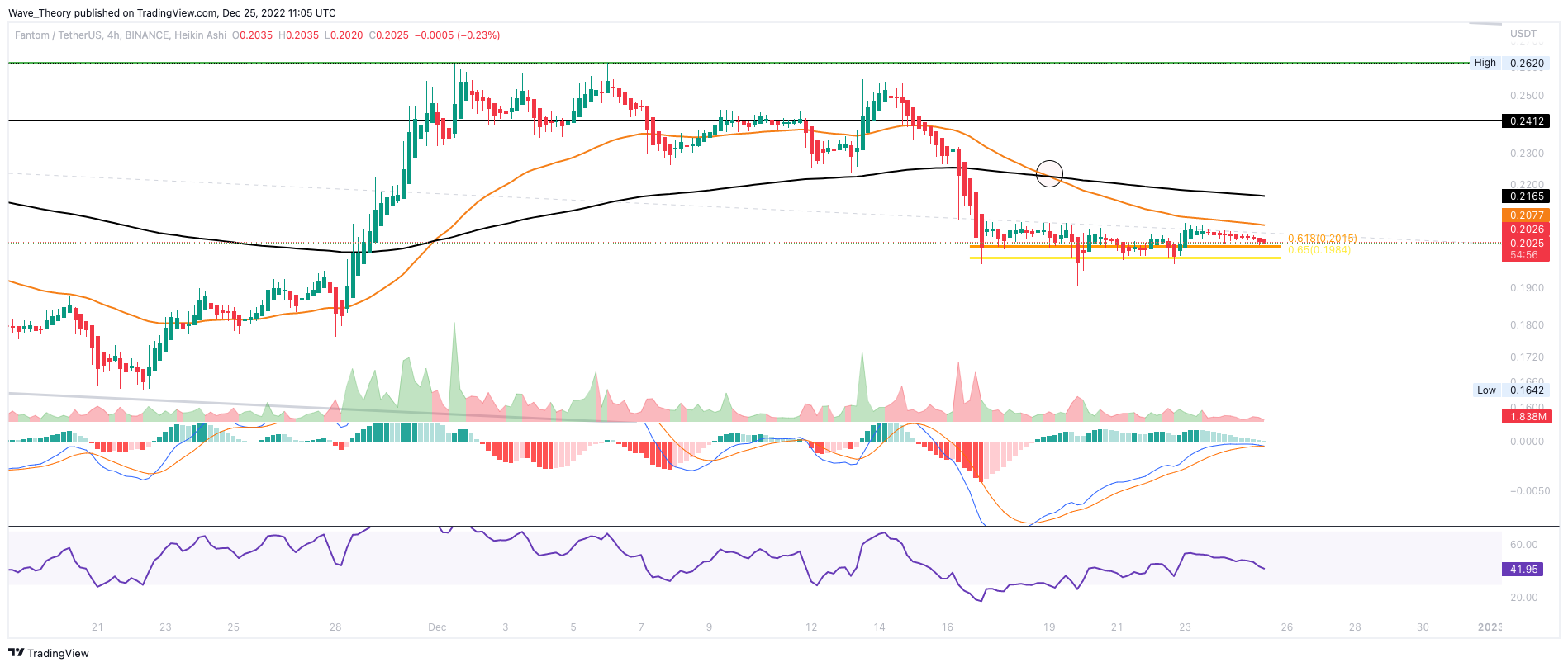 Der FTM Kurs kehrte zur Golden Ratio Unterstützung bei rund 0,2 USD zurück