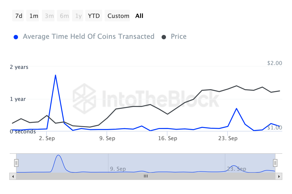 SponsoredAußerdem zeigen Daten von IntoTheBlock, dass die Haltezeit der Coins in den letzten 90 Tagen um 183,81 Prozent gestiegen ist. Das bedeutet, dass viele FET-Inhaber bei der Kryptowährung geblieben sind, ohne Transaktionen durchzuführen oder sie möglicherweise zu verkaufen.