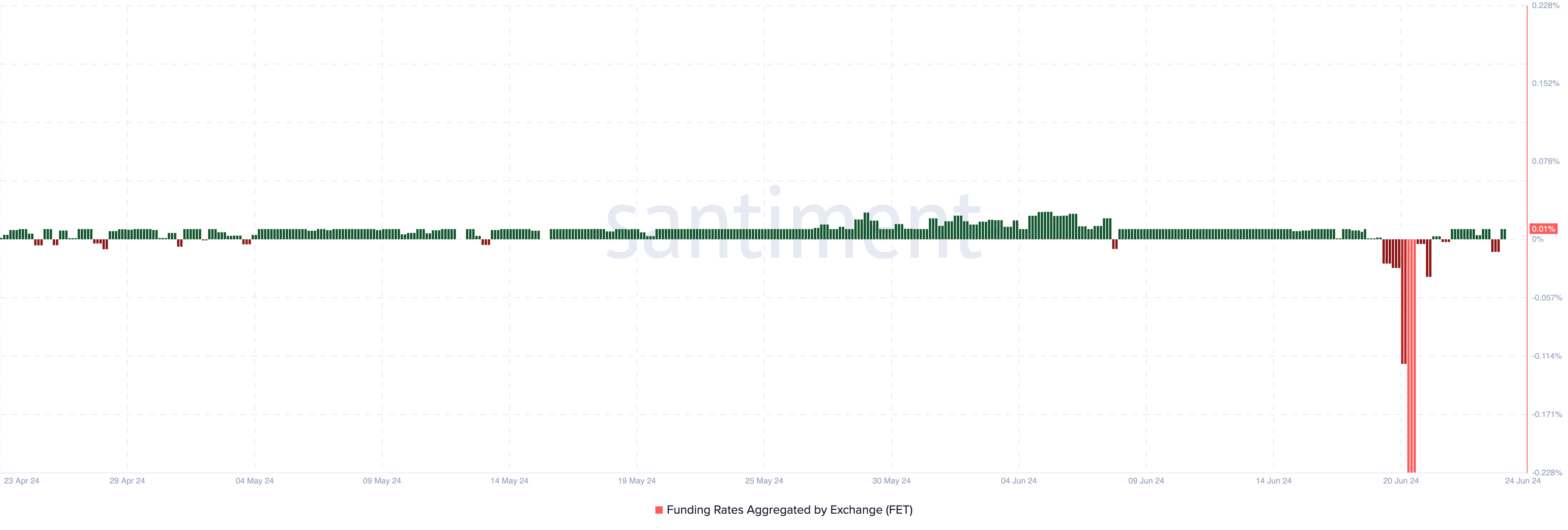 In den frühen Stunden des 24. Juli war die Finanzierung negativ, was darauf hindeutet, dass Händler negative Renditen von FET erwarten. Zum Zeitpunkt dieses Schreibens ist der Wert jedoch wieder in die grüne Zone zurückgekehrt und liegt bei 0,01 Prozent.