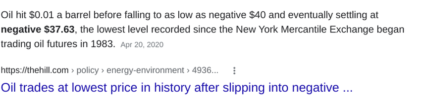 Ein Fass Öl kostete zeitweise $40, dann gar nichts, und schließlich wurde man dafür bezahlt, wenn man ein Fass übernahm.