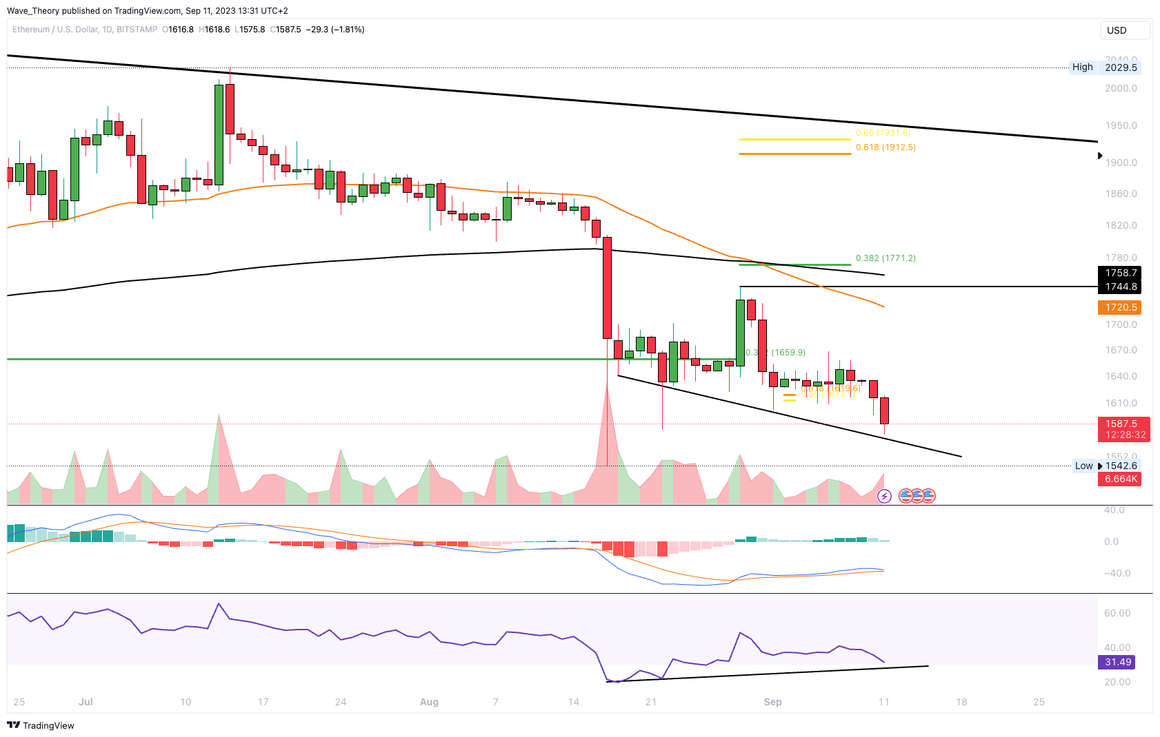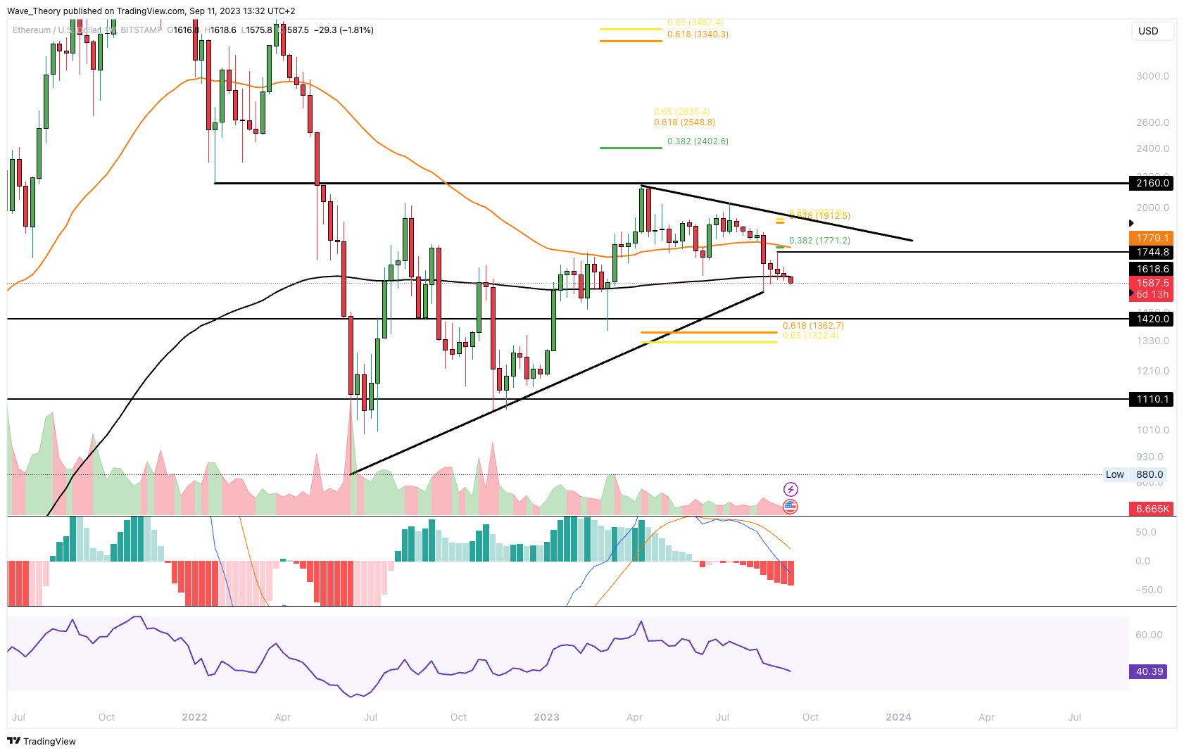 SponsoredDer Ethereum Kurs hat die Golden Ratio Unterstützung bei rund 1.620 USD bärisch gebrochen