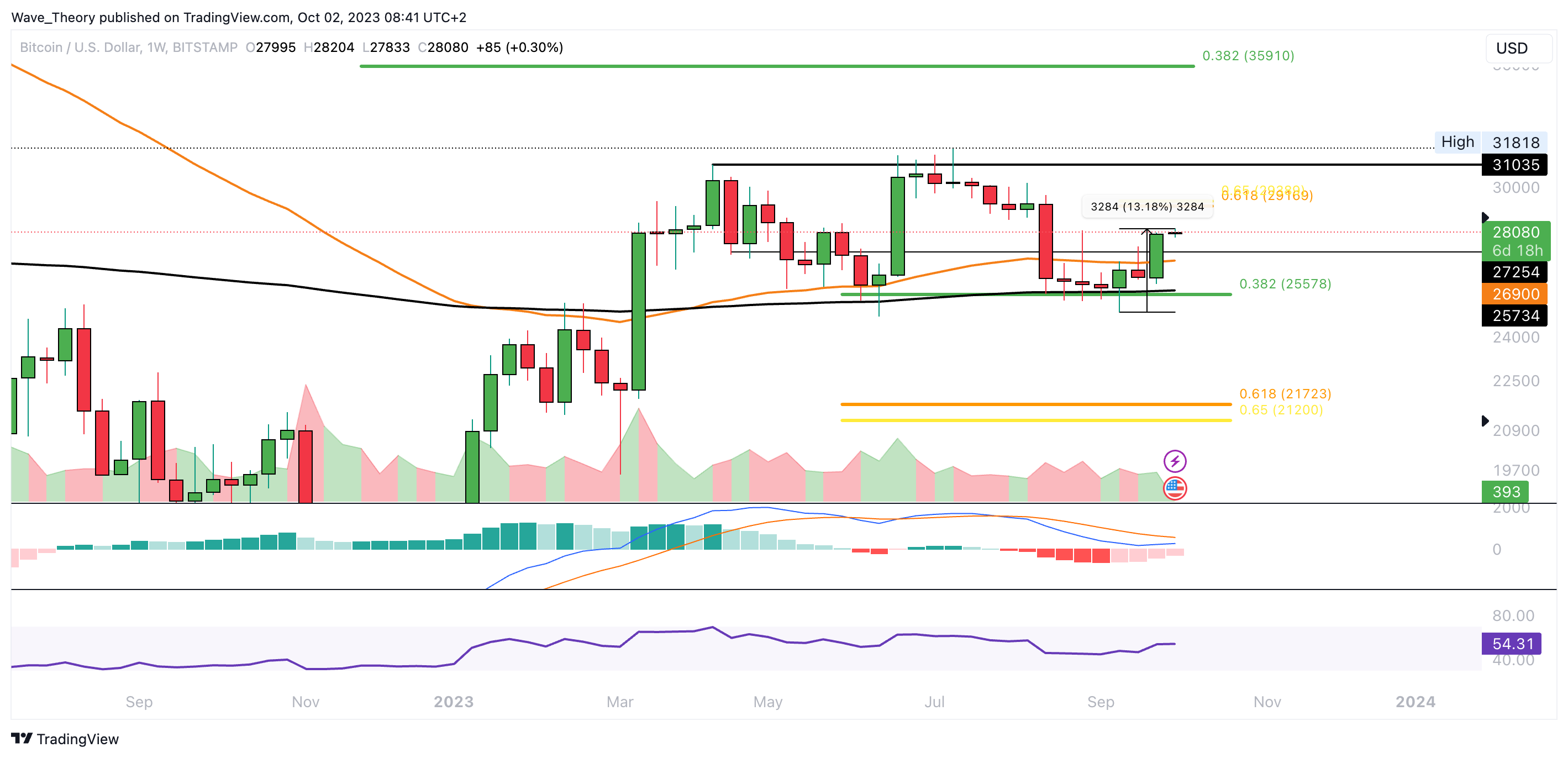 Wenn Bitcoin die 0,382 Fib Unterstützung bei rund 25.580 USD bricht, wartet bei rund 21.200 USD die entscheidende Golden Ratio Unterstützung. Denn solange sich BTC darüber hält, bleibt die Aufwärtsbewegung bullisch intakt.
