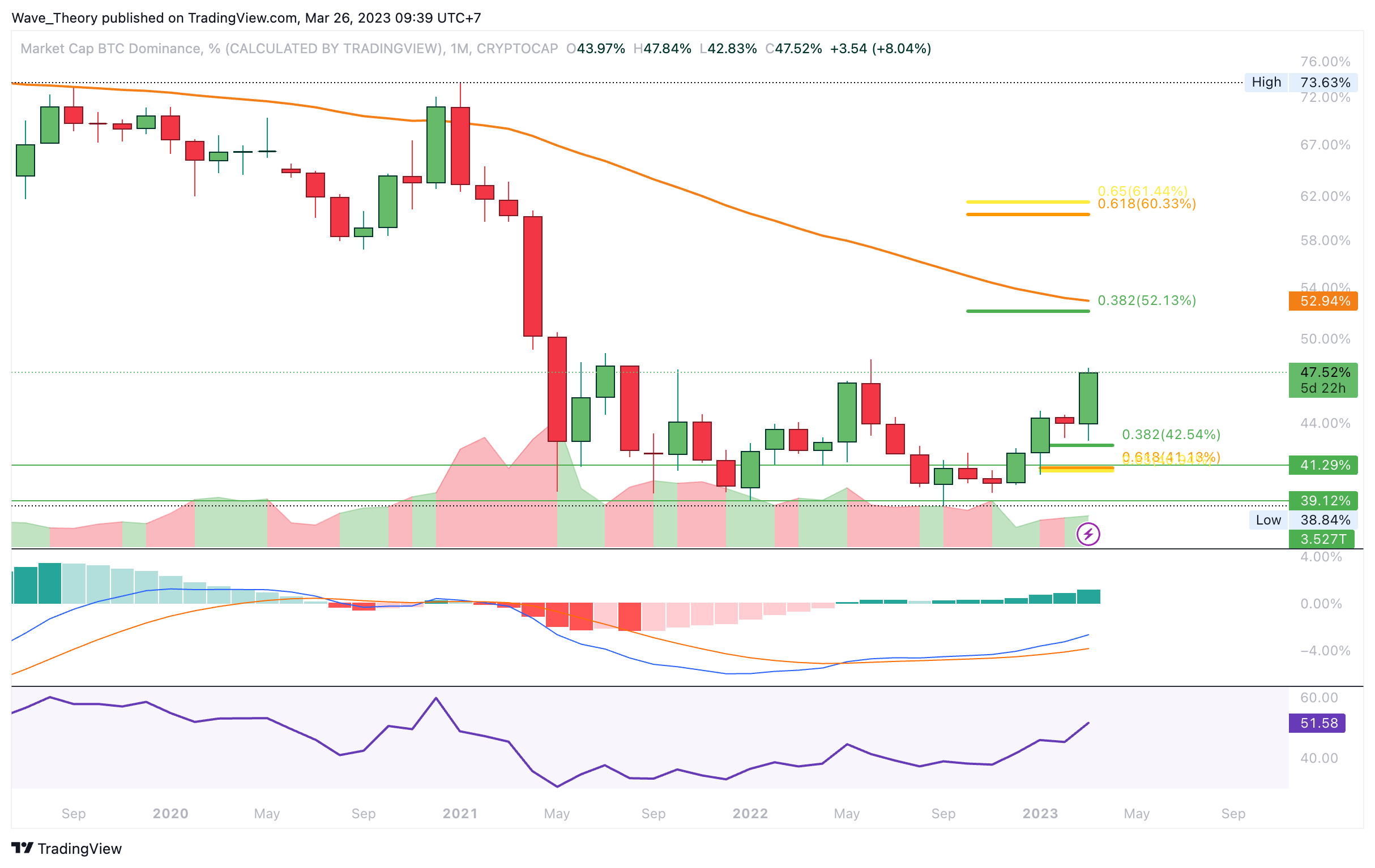 Die Bitcoin Dominanz könnte den Fib Widerstand bei rund 52,13 % anpeilen