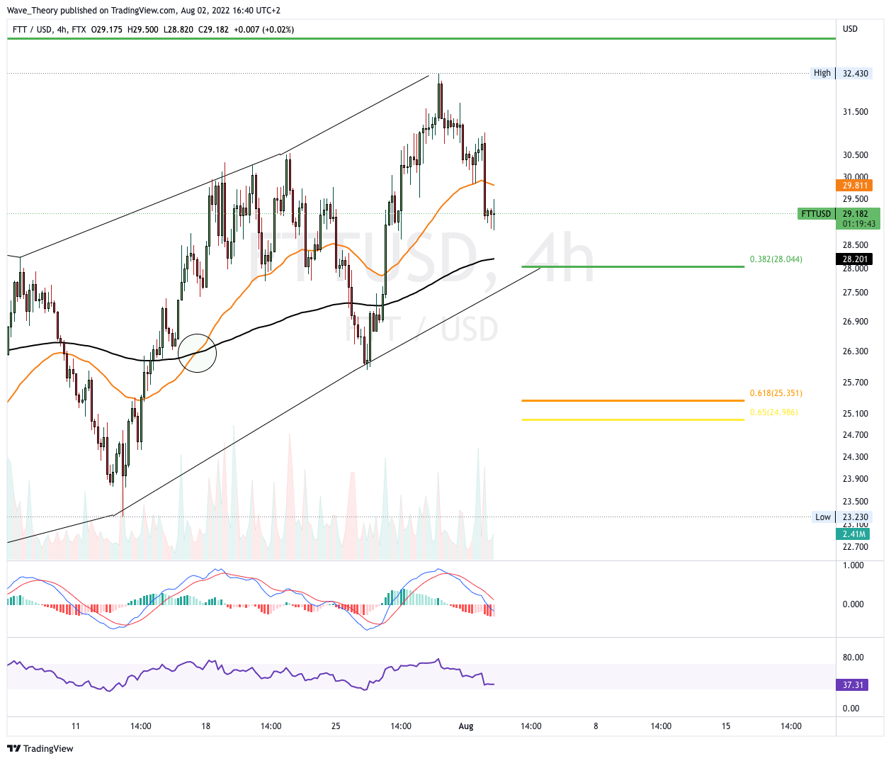 Im 4H-Chart kam es zudem zu einem Golden Crossover, womit der Trend kurzfristig bullisch bestätigt ist. Aktuell stehen die Chancen gut, dass der FTT Kurs entweder an rund 28 USD oder an rund 25 USD stark abprallen wird, um die Aufwärtsbewegung fortzusetzen.